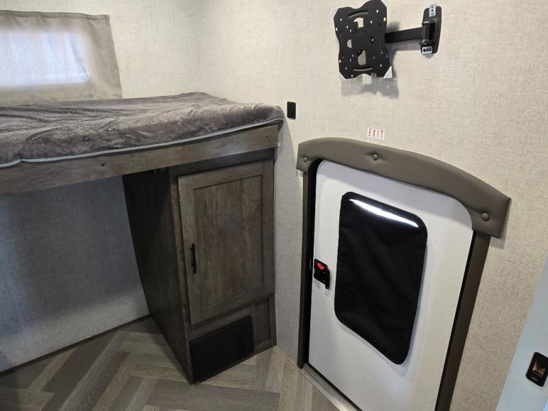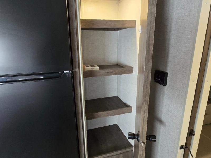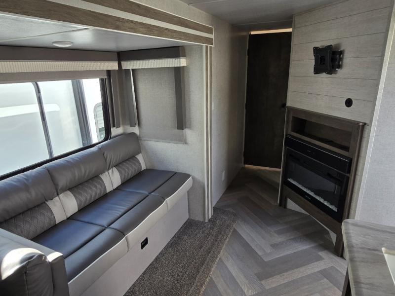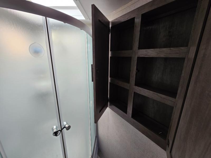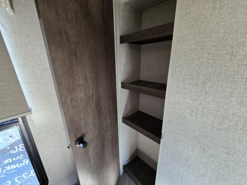 When you're ready to upgrade your RV to a unit with more sleeping space and comfort, choose this Wildwood travel trailer, and you'll never look back. After setting up camp, put out the large slide and prepare lunch indoors or outside at the exterior camp kitchen, and the 18' power awning will shade you from the sun. The kids will find all their snacks in the walk-in pantry, and they can grab a cold drink from the 11-cubic foot refrigerator. The U-shaped dinette is a part of the Versa Lounge, and it will provide comfortable seating space. This model features a rear private bunkhouse with a Versa queen bed and two Versa bunks, and you will love the front private bedroom that includes dual bedside closets.