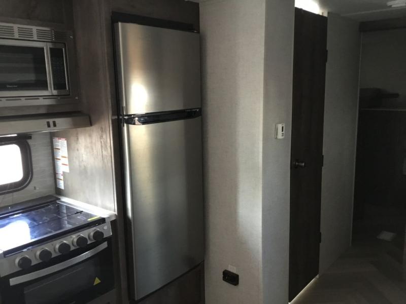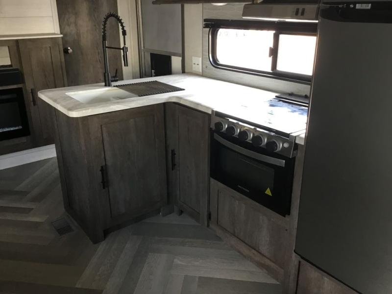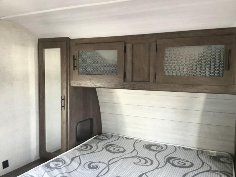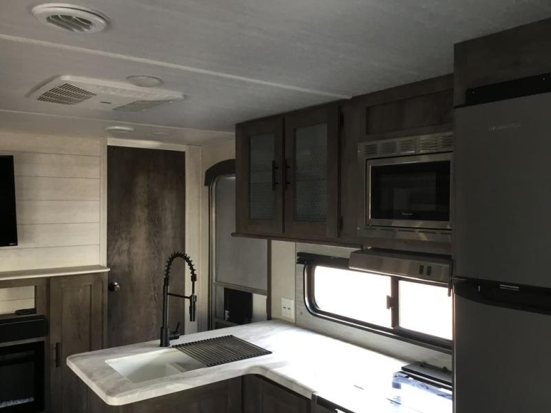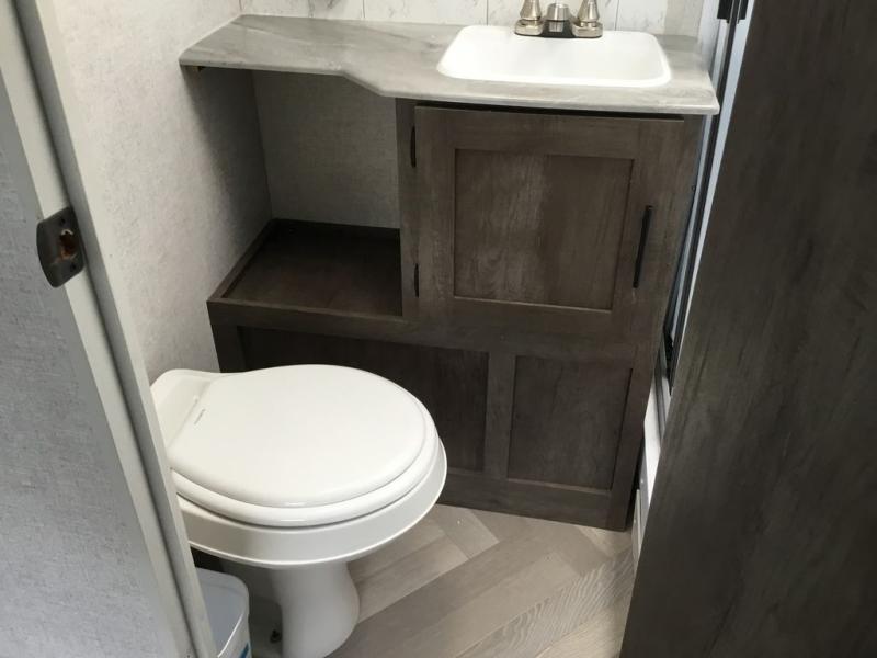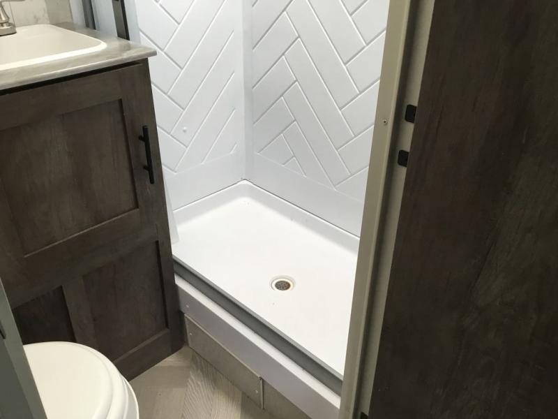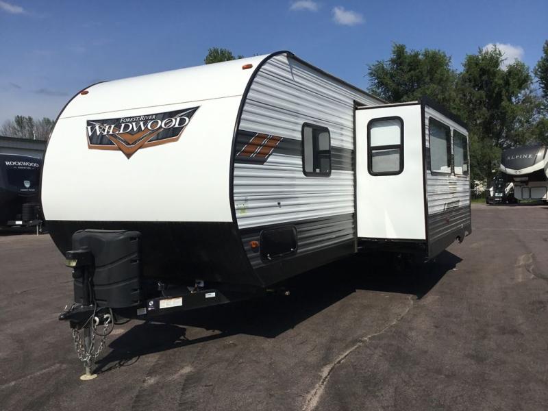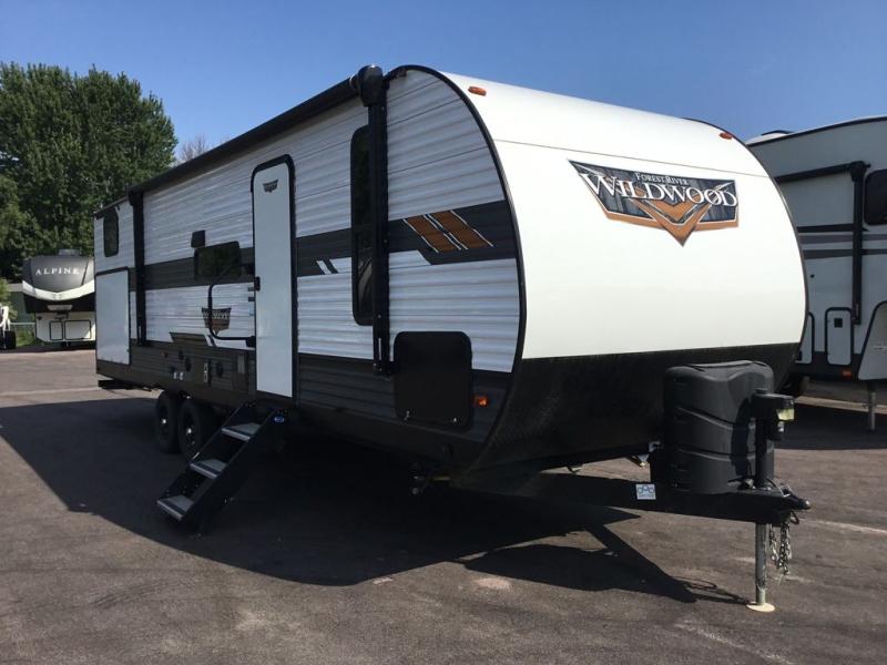 Forest River offers you the highest quality and the best components in its Wildwood travel trailer! The fully walkable one-piece roof is ultra reliable, and the rest of the construction is just as dependable with the powder-coated I-beam frame, cambered chassis, R-7 fiberglass insulation, nitrogen-filled tires, and triple-seal slide-out system. The Wildwood is not only full of quality, but it is also full of style with its herringbone luxury vinyl flooring, shiplap wall board, upgraded designer furniture, high-gloss exterior metal, and seamless countertops. The Wildwood also comes with some extra features that will make your life more comfortable, like the exterior speakers with blue LED light, the tablet-compatible USB ports, the residential vanity with shower caddy, and true stabilizer jacks with JT's Strong Arm.