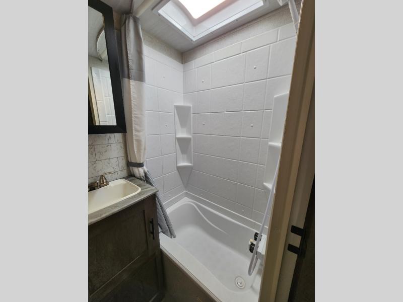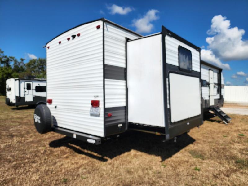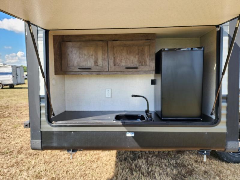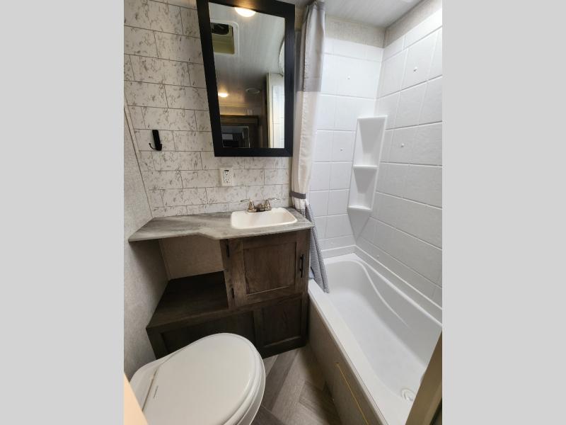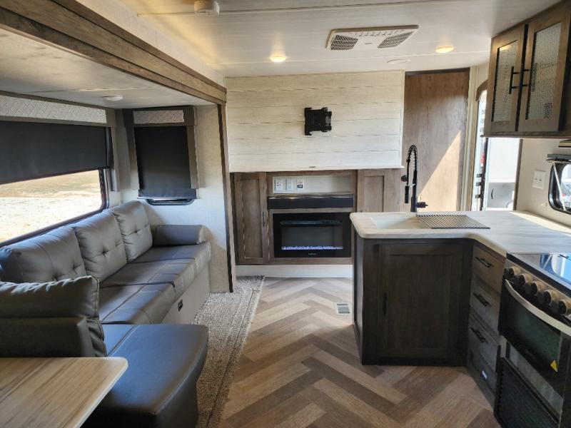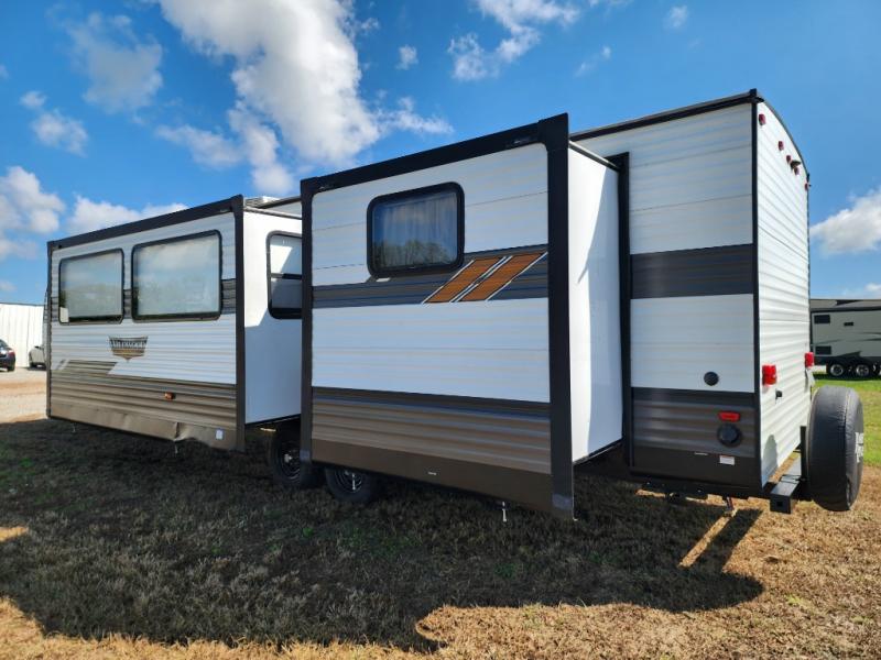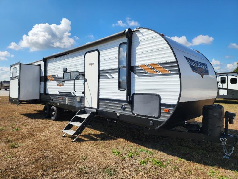 Forest River offers you the highest quality and the best components in its Wildwood travel trailer! The fully walkable one-piece roof is ultra reliable, and the rest of the construction is just as dependable with the powder-coated I-beam frame, cambered chassis, R-7 fiberglass insulation, nitrogen-filled tires, and triple-seal slide-out system. The Wildwood is not only full of quality, but it is also full of style with its herringbone luxury vinyl flooring, shiplap wall board, upgraded designer furniture, high-gloss exterior metal, and seamless countertops. The Wildwood also comes with some extra features that will make your life more comfortable, like the exterior speakers with blue LED light, the tablet-compatible USB ports, the residential vanity with shower caddy, and true stabilizer jacks with JT's Strong Arm.