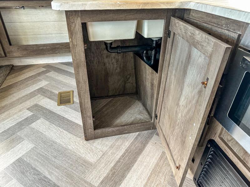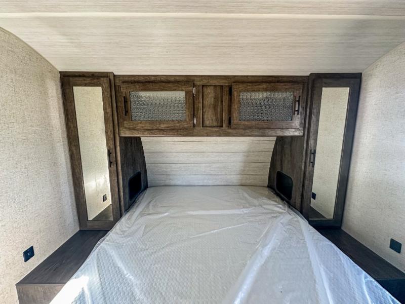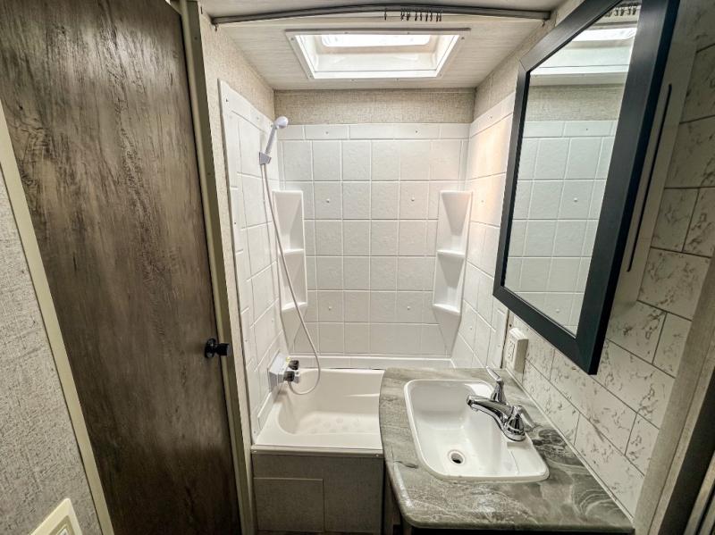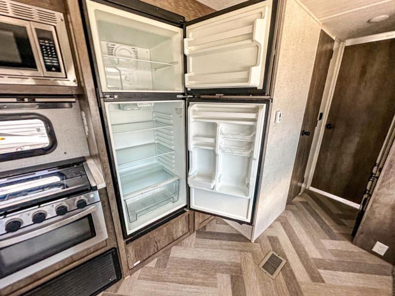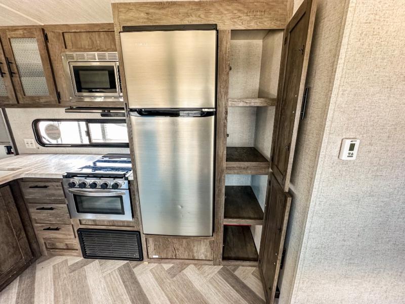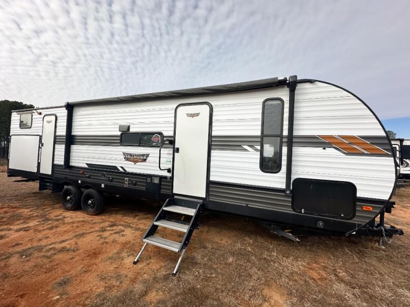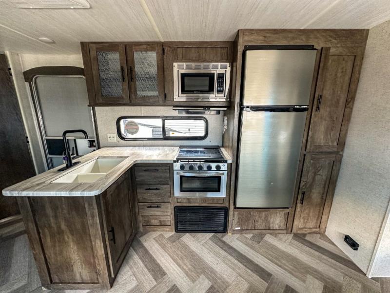 Forest River offers you the highest quality and the best components in its Wildwood travel trailer! The fully walkable one-piece roof is ultra reliable, and the rest of the construction is just as dependable with the powder-coated I-beam frame, cambered chassis, R-7 fiberglass insulation, nitrogen-filled tires, and triple-seal slide-out system. The Wildwood is not only full of quality, but it is also full of style with its herringbone luxury vinyl flooring, shiplap wall board, upgraded designer furniture, high-gloss exterior metal, and seamless countertops. The Wildwood also comes with some extra features that will make your life more comfortable, like the exterior speakers with blue LED light, the tablet-compatible USB ports, the residential vanity with shower caddy, and true stabilizer jacks with JT's Strong Arm.
