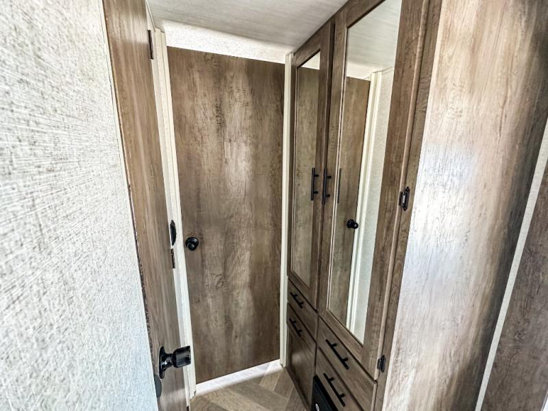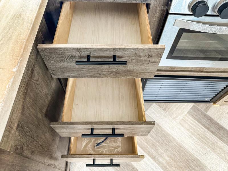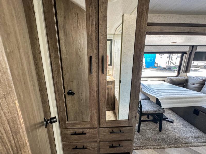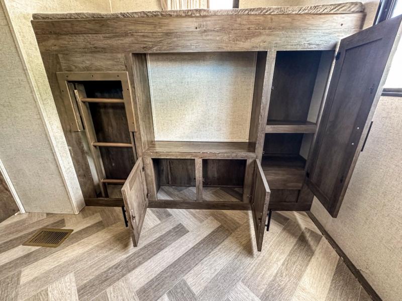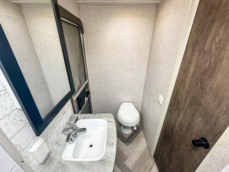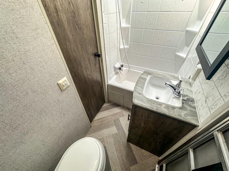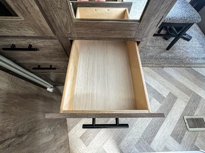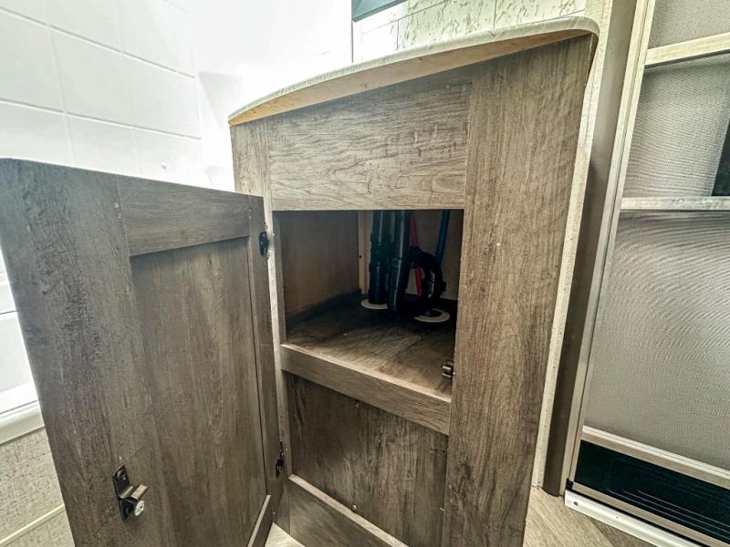 Forest River offers you the highest quality and the best components in its Wildwood travel trailer! The fully walkable one-piece roof is ultra reliable, and the rest of the construction is just as dependable with the powder-coated I-beam frame, cambered chassis, R-7 fiberglass insulation, nitrogen-filled tires, and triple-seal slide-out system. The Wildwood is not only full of quality, but it is also full of style with its herringbone luxury vinyl flooring, shiplap wall board, upgraded designer furniture, high-gloss exterior metal, and seamless countertops. The Wildwood also comes with some extra features that will make your life more comfortable, like the exterior speakers with blue LED light, the tablet-compatible USB ports, the residential vanity with shower caddy, and true stabilizer jacks with JT's Strong Arm.
