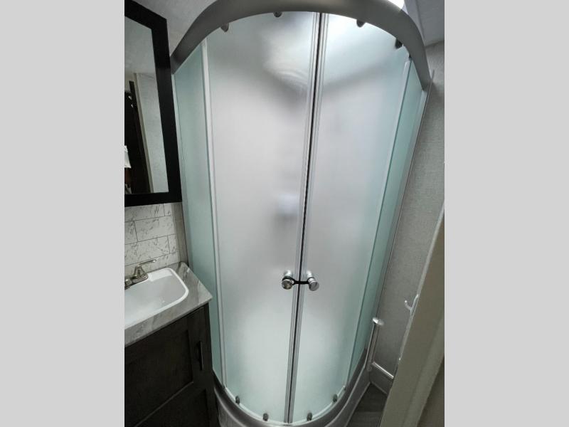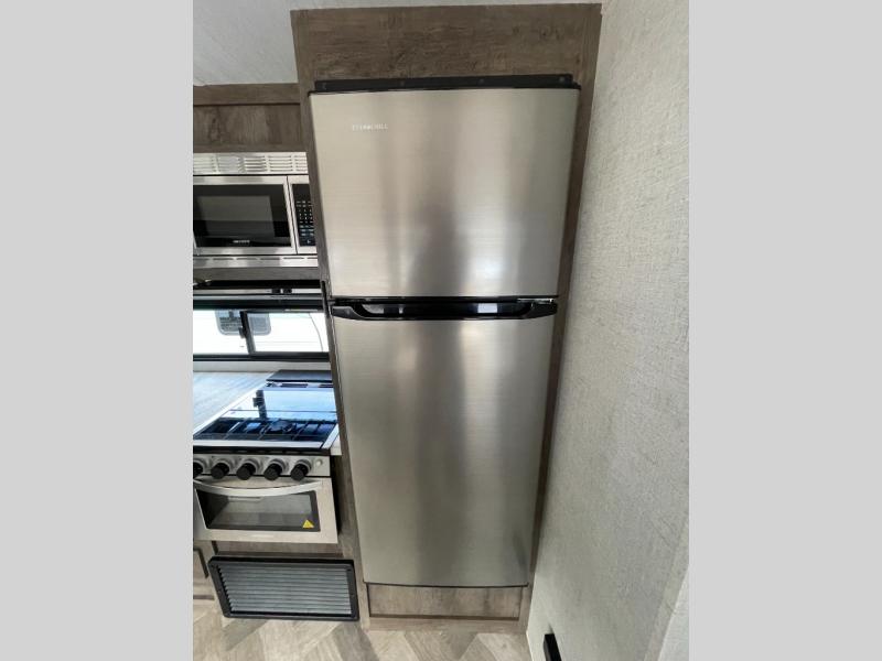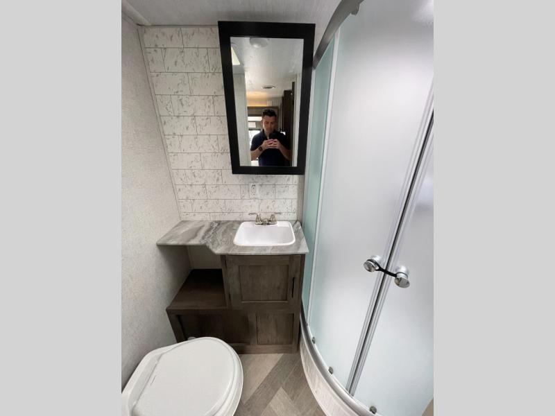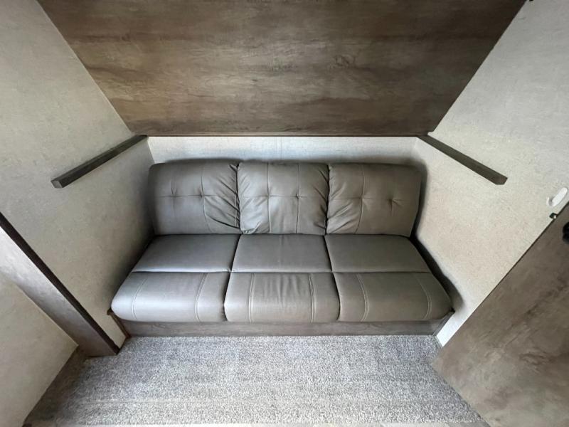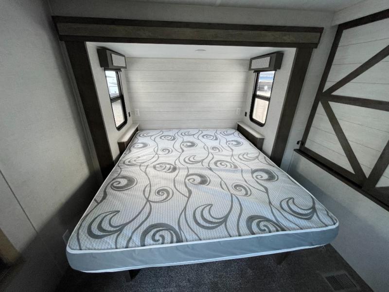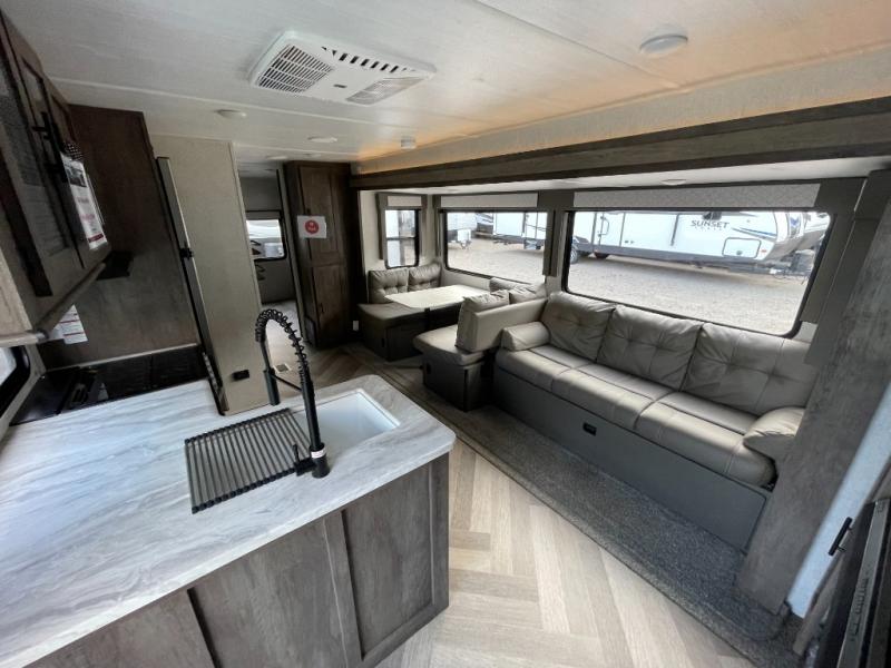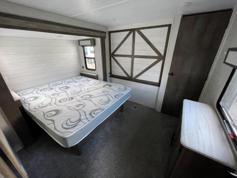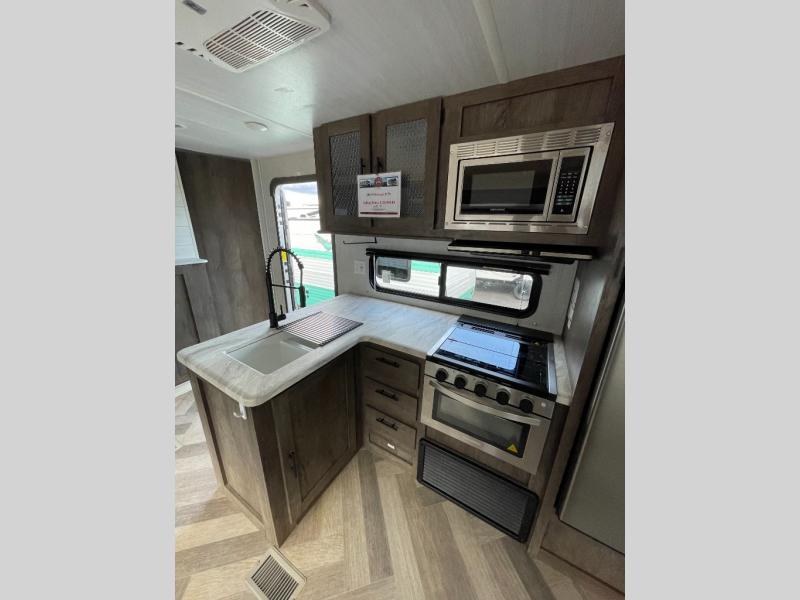 Forest River offers you the highest quality and the best components in its Wildwood travel trailer! The fully walkable one-piece roof is ultra reliable, and the rest of the construction is just as dependable with the powder-coated I-beam frame, cambered chassis, R-7 fiberglass insulation, nitrogen-filled tires, and triple-seal slide-out system. The Wildwood is not only full of quality, but it is also full of style with its herringbone luxury vinyl flooring, shiplap wall board, upgraded designer furniture, high-gloss exterior metal, and seamless countertops. The Wildwood also comes with some extra features that will make your life more comfortable, like the exterior speakers with blue LED light, the tablet-compatible USB ports, the residential vanity with shower caddy, and true stabilizer jacks with JT's Strong Arm.