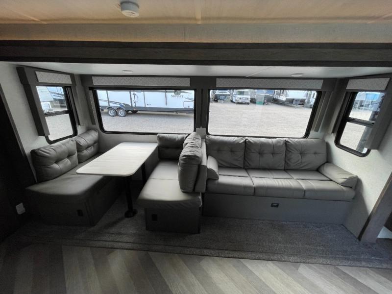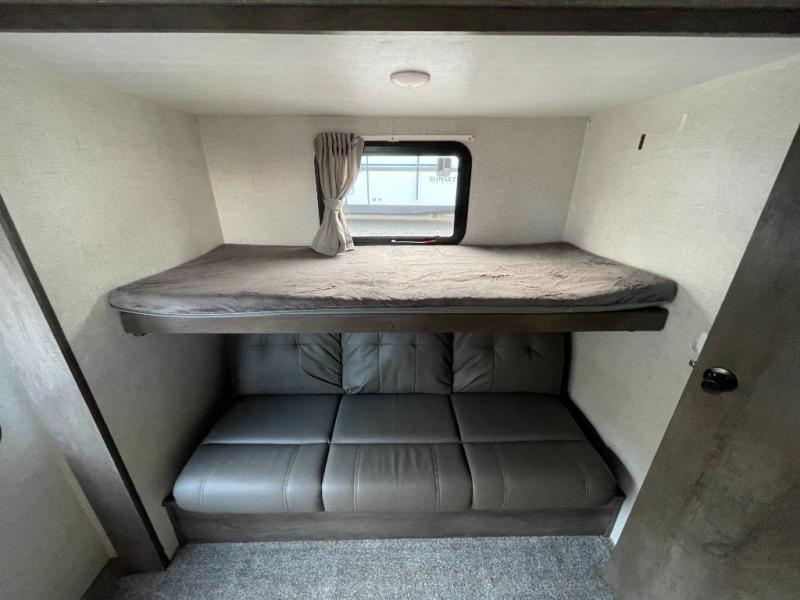 Have you been searching for the perfect travel trailer for your family? This Wildwood might just be the RV you have been looking for. Just imagine hiking, biking and playing horse shoes at your favorite campground to return to plenty of space for everything thanks to the triple slides, one in each room. The kiddos will surely head to the rear private bunkhouse to claim a bunk bed while you take a nap on the custom king bed in the front bedroom. You might even put a load of clothes in the washer and dryer if you chose to add that option. You can then make dinner on the outside kitchen or in the full kitchen inside. Everyone can play games or relax on the Versa Lounge before heading outside to see the stars. Check it out!