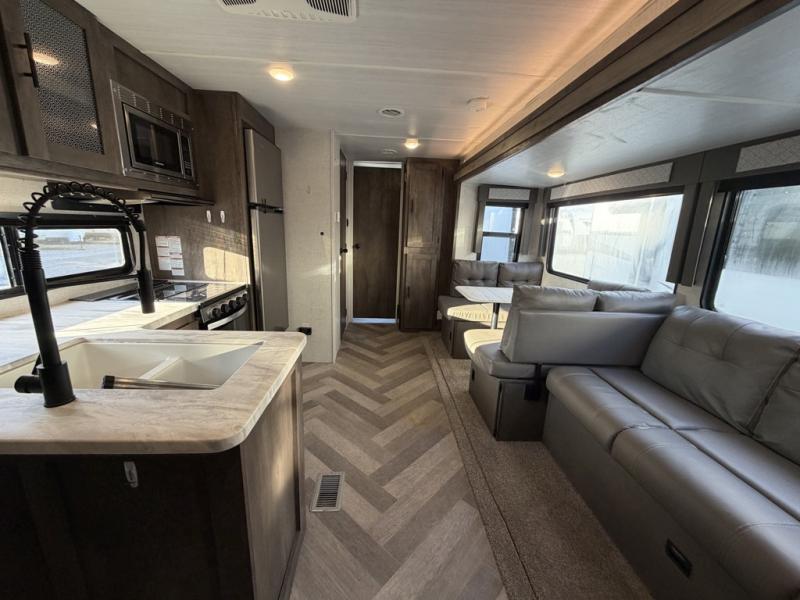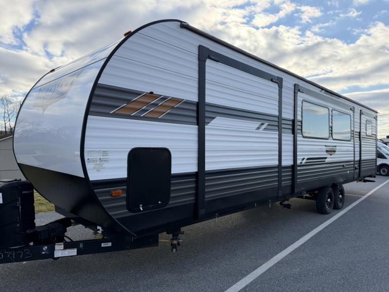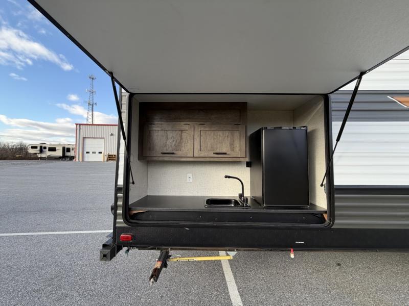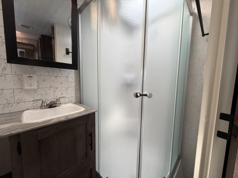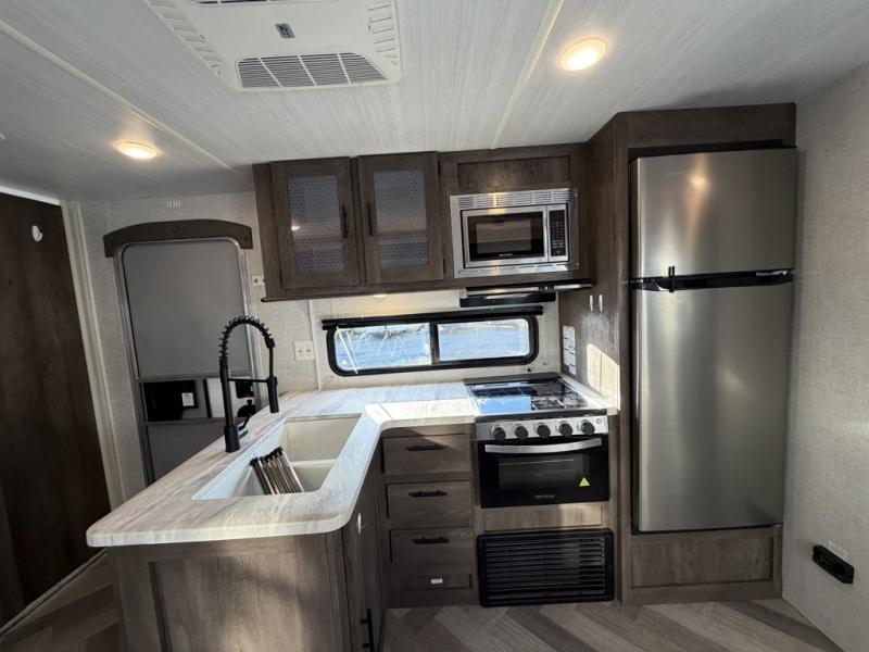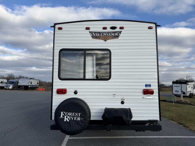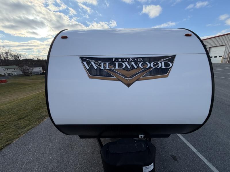 Forest River offers you the highest quality and the best components in its Wildwood travel trailer! The fully walkable one-piece roof is ultra reliable, and the rest of the construction is just as dependable with the powder-coated I-beam frame, cambered chassis, R-7 fiberglass insulation, nitrogen-filled tires, and triple-seal slide-out system. The Wildwood is not only full of quality, but it is also full of style with its herringbone luxury vinyl flooring, shiplap wall board, upgraded designer furniture, high-gloss exterior metal, and seamless countertops. The Wildwood also comes with some extra features that will make your life more comfortable, like the exterior speakers with blue LED light, the tablet-compatible USB ports, the residential vanity with shower caddy, and true stabilizer jacks with JT's Strong Arm.