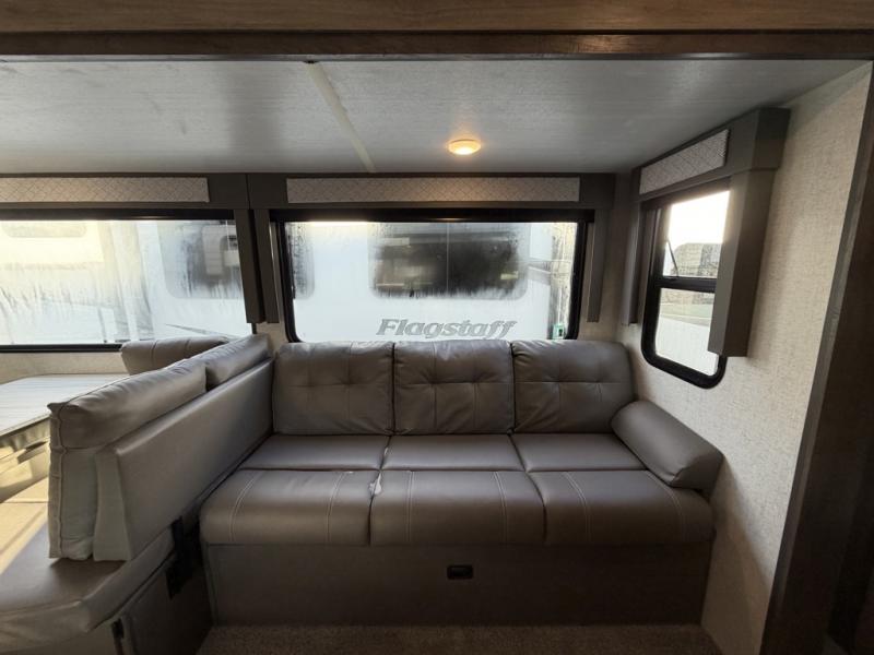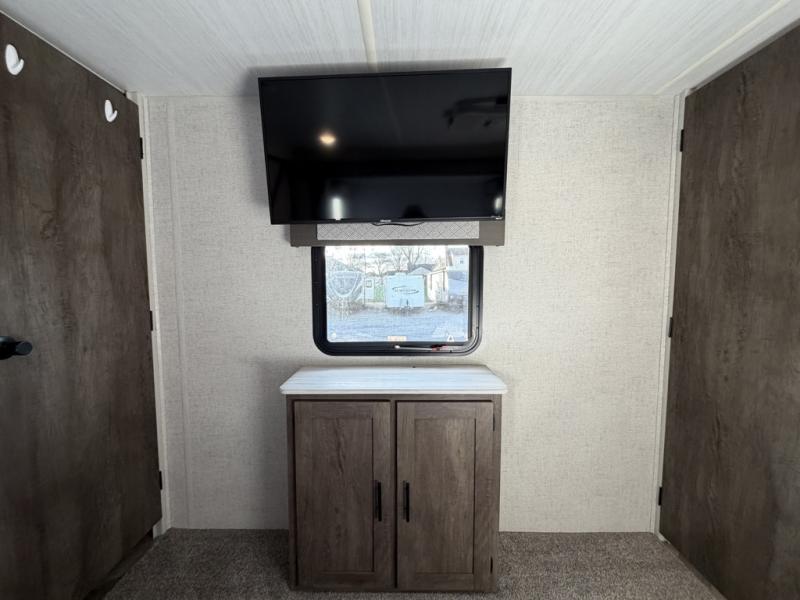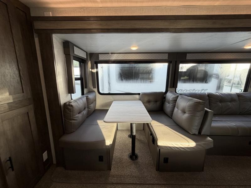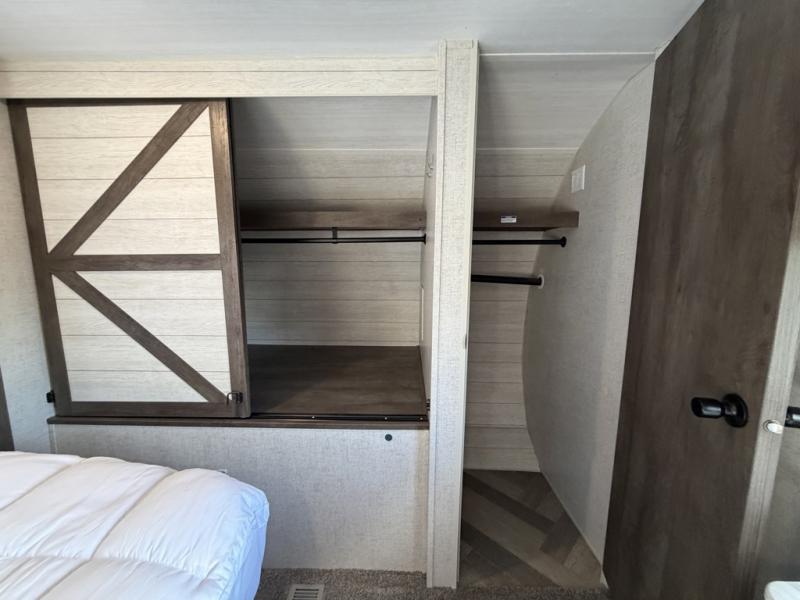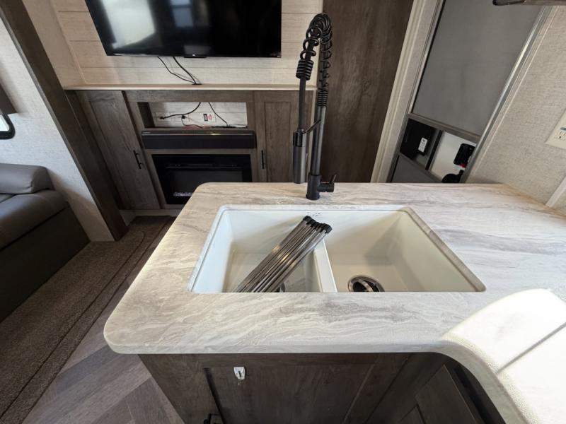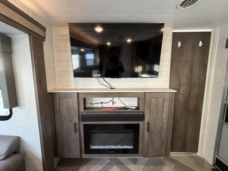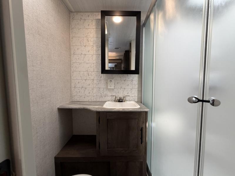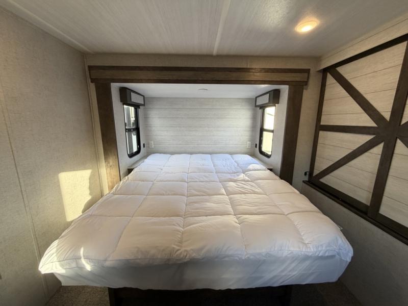 Forest River offers you the highest quality and the best components in its Wildwood travel trailer! The fully walkable one-piece roof is ultra reliable, and the rest of the construction is just as dependable with the powder-coated I-beam frame, cambered chassis, R-7 fiberglass insulation, nitrogen-filled tires, and triple-seal slide-out system. The Wildwood is not only full of quality, but it is also full of style with its herringbone luxury vinyl flooring, shiplap wall board, upgraded designer furniture, high-gloss exterior metal, and seamless countertops. The Wildwood also comes with some extra features that will make your life more comfortable, like the exterior speakers with blue LED light, the tablet-compatible USB ports, the residential vanity with shower caddy, and true stabilizer jacks with JT's Strong Arm.