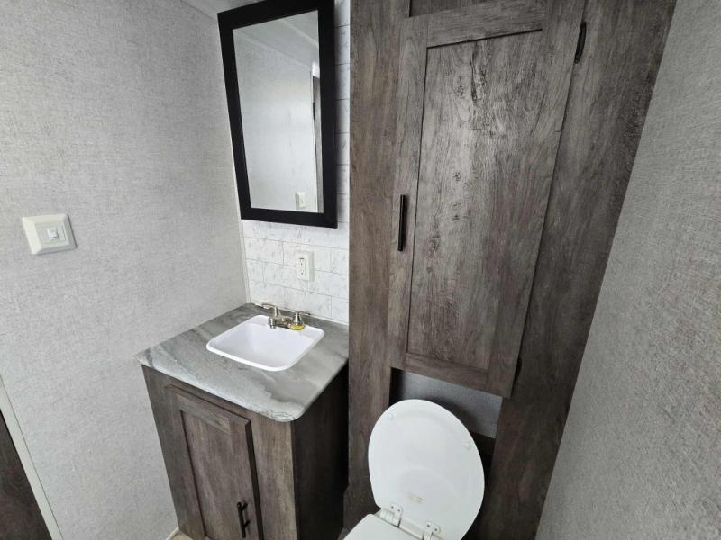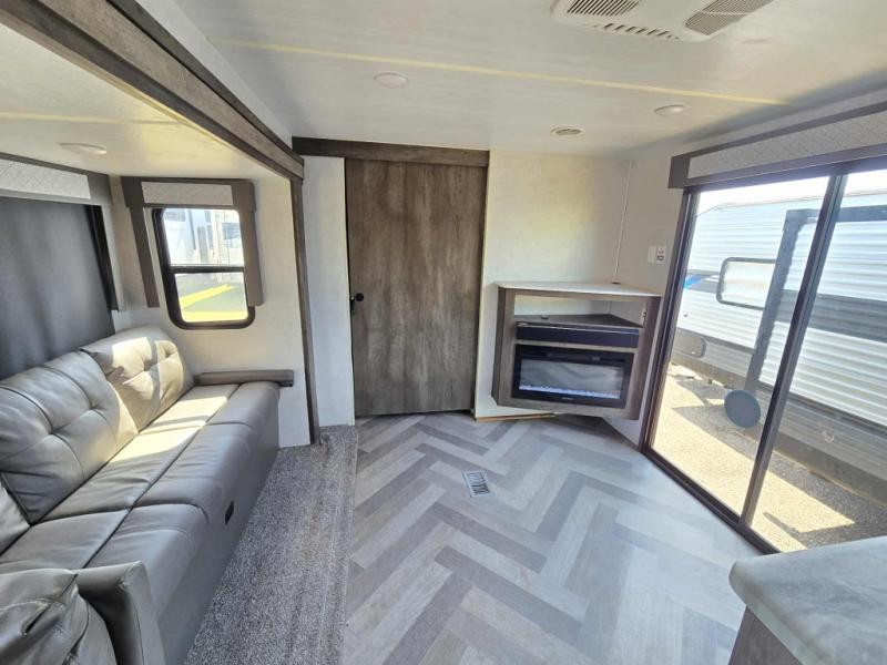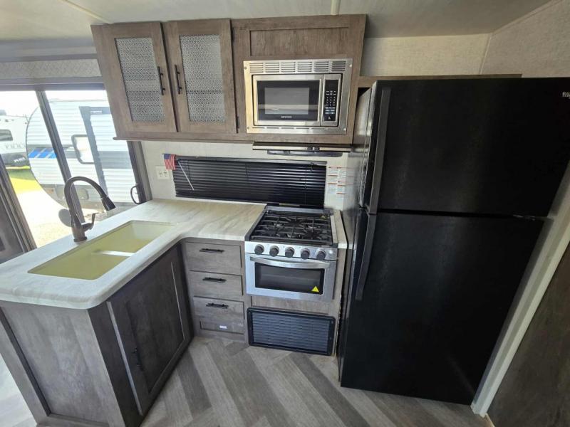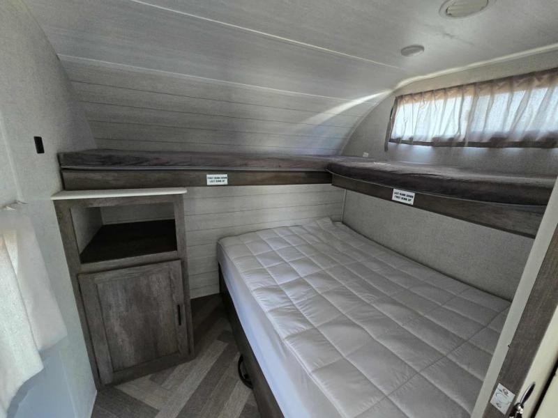Forest River offers you the highest quality and the best components in its Wildwood travel trailer! The fully walkable one-piece roof is ultra reliable, and the rest of the construction is just as dependable with the powder-coated I-beam frame, cambered chassis, R-7 fiberglass insulation, nitrogen-filled tires, and triple-seal slide-out system. The Wildwood is not only full of quality, but it is also full of style with its herringbone luxury vinyl flooring, shiplap wall board, upgraded designer furniture, high-gloss exterior metal, and seamless countertops. The Wildwood also comes with some extra features that will make your life more comfortable, like the exterior speakers with blue LED light, the tablet-compatible USB ports, the residential vanity with shower caddy, and true stabilizer jacks with JT's Strong Arm.