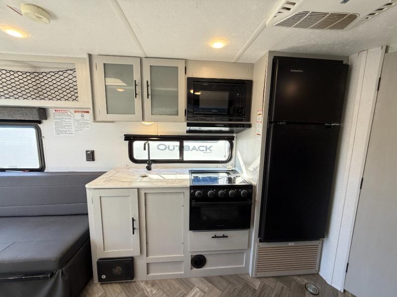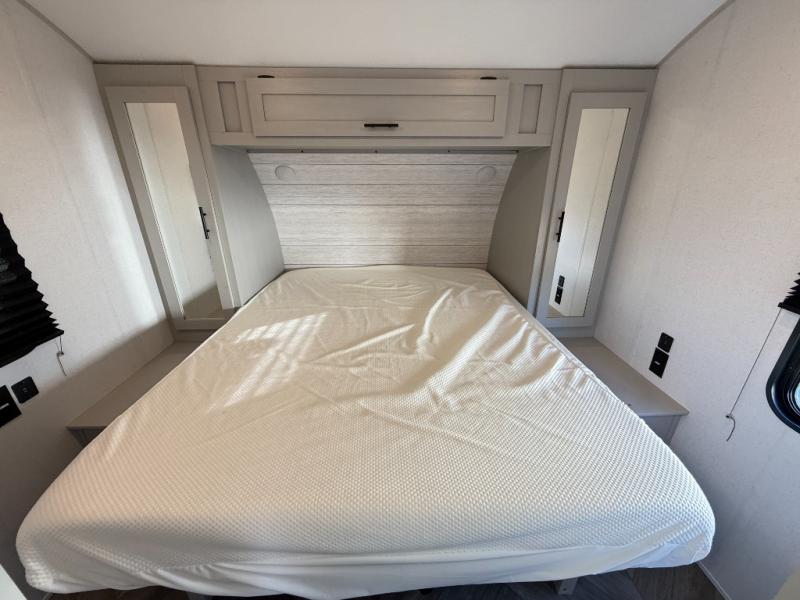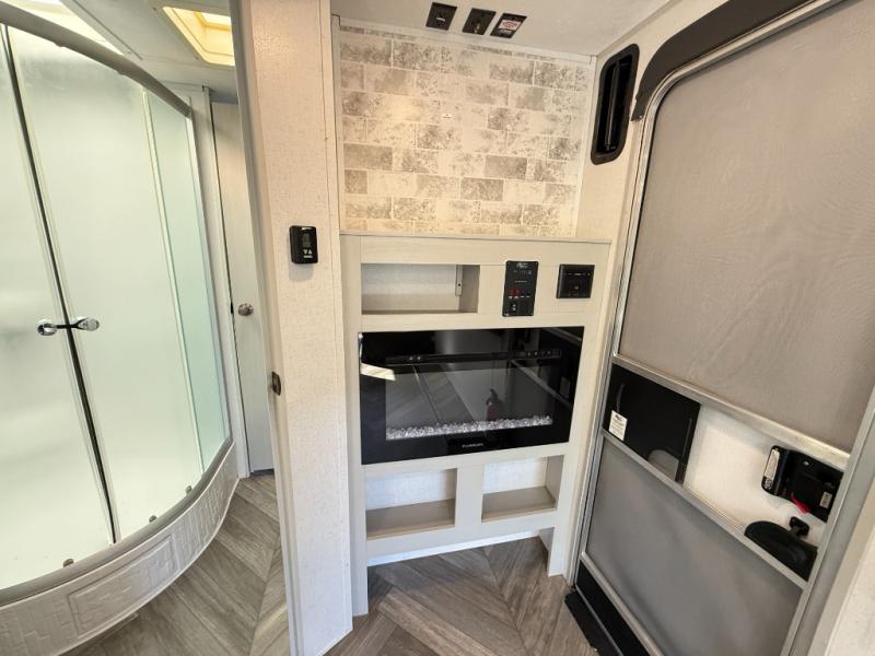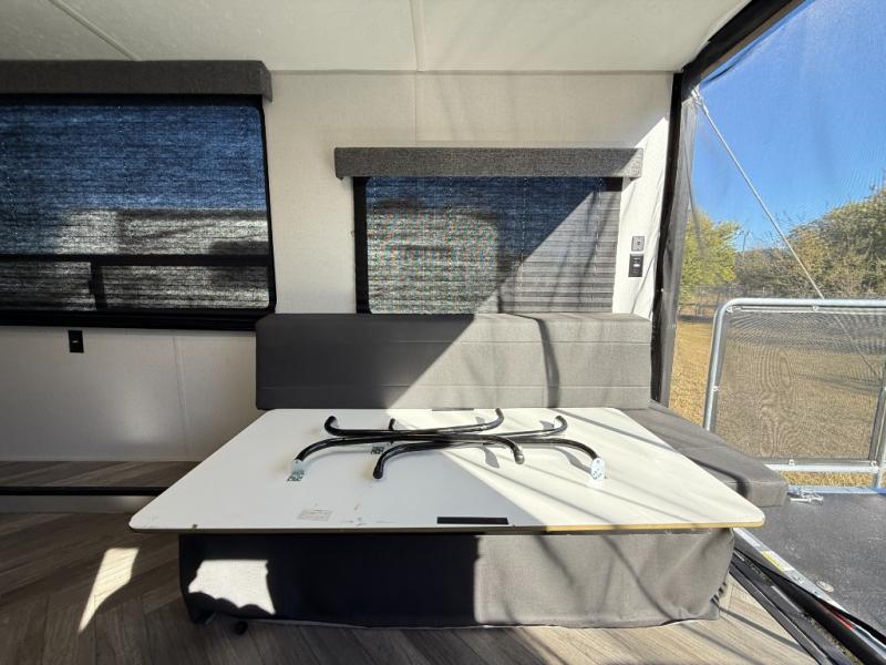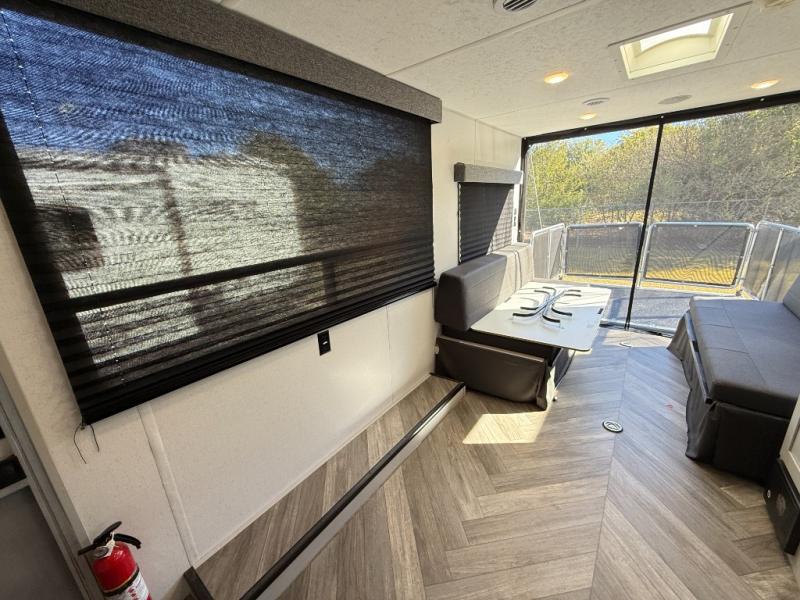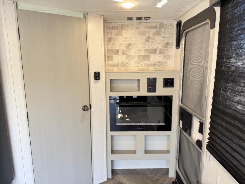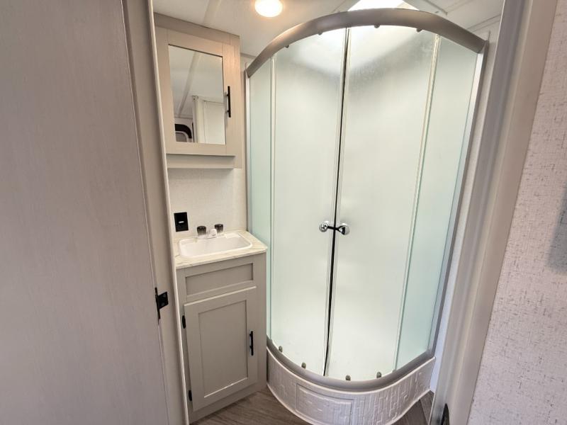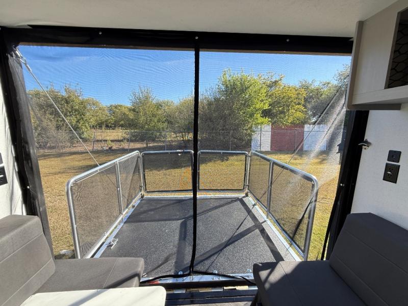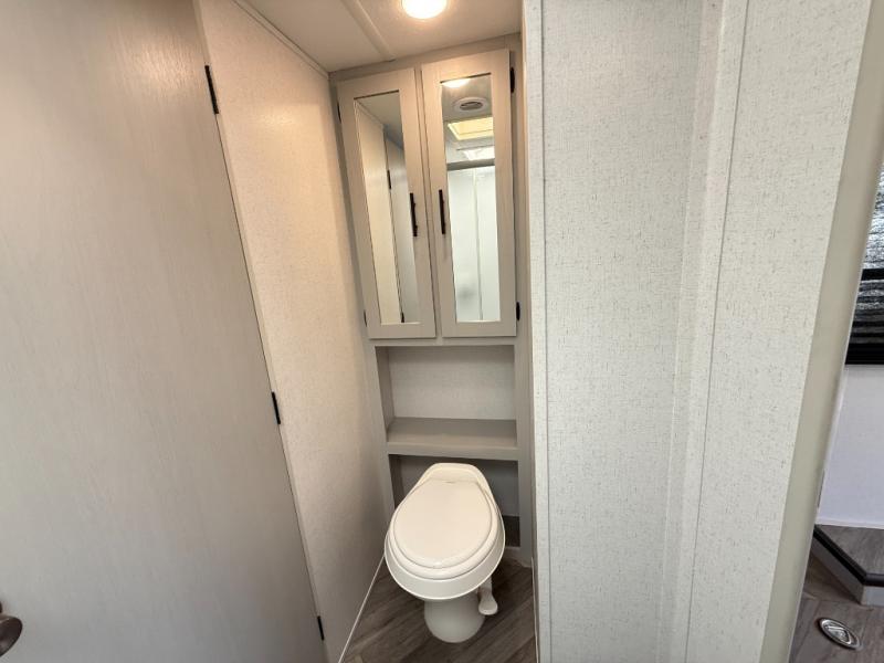 When the great outdoors is calling your name, load up your riding toys, your camping gear, and set out to your favorite campground with this Wildwood FSX toy hauler. You can easily load and unload your off-road toys with the 90" x 75" ramp door with rail kit. More storage can be found in the exterior pass-through storage area along the front. Seating space can be found at the sleeper sofas which can transform into a bed for additional sleeping space at night. The walk-through bathroom has all of the modern conveniences, such as a neo-angled shower, toilet, and sink, and when you are ready to call it a day, head to the front bedroom where you will find an RV queen bed with storage bins and a shoe nook underneath.