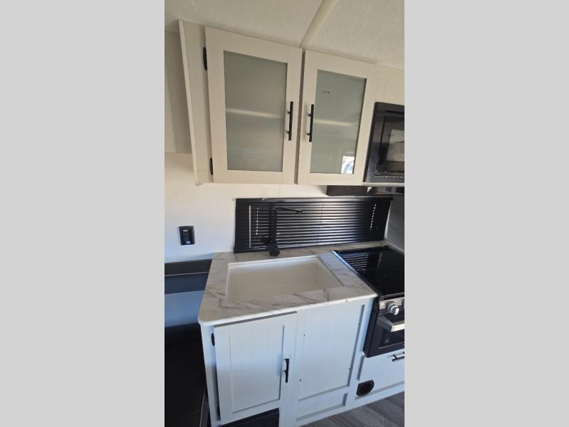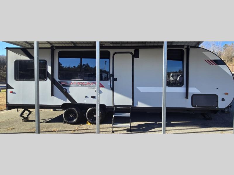The Forest River Wildwood FSX travel trailer and toy hauler comes with a Best-In-Class Package that truly is the best! Some of the features you'll find in this package are the enclosed Accessibelly, the large-capacity 11-cubic foot refrigerator, the seamless countertops, the outside hot/cold shower, the power awning with adjustable legs and LED lights, and the preparation for Wi-Fi. You'll also notice that the Wildwood FSX provides you with exceptional views of your surroundings with its largest-in-class opening panoramic windows, and the herringbone pattern luxury extra-thick vinyl flooring is an excellent base that will be easy to keep clean. Some other notable features are the TUFFCOAT scratch-resistant exterior paint, the tablet-compatible USB ports, and the residential high-rise kitchen faucet. These Platinum Edition trailers also come with smooth fiberglass exterior walls, a .040 smooth front metal plate, a Platinum graphics package, and upgraded steel wheels.