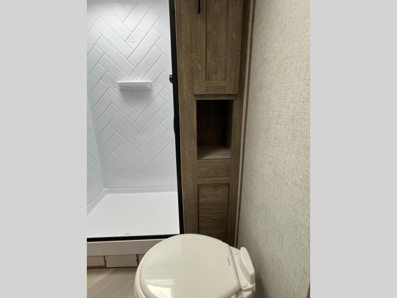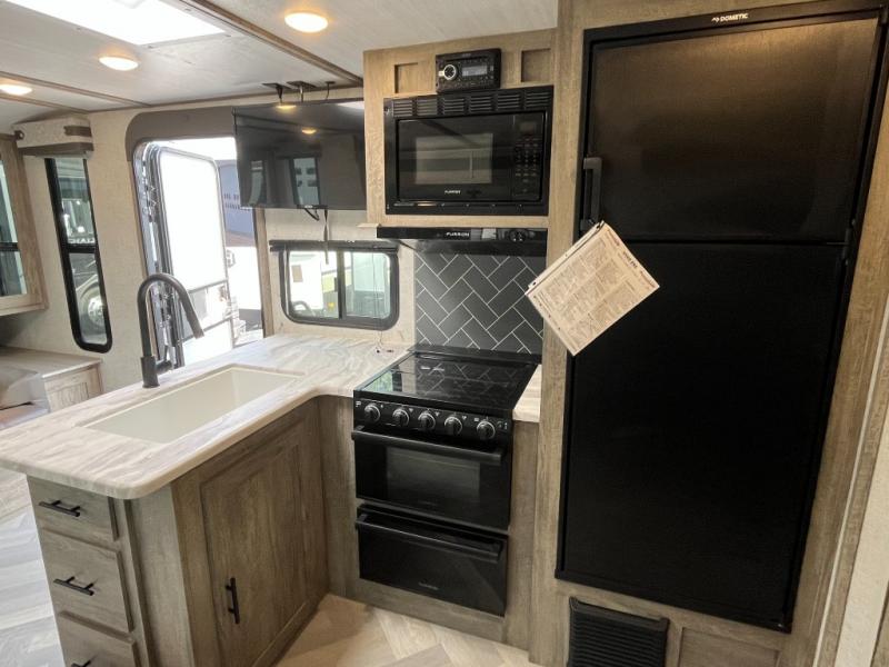 The Wildwood Heritage Glen Hyper-Lyte travel trailer by Forest River offers stability with a wide stance axle system, easy setup with a power tongue jack with LED docking light, and safe entry with the Step Above aluminum entry steps plus the XL Lend-a-Hand entry grab handle to the main entrance. The XL Max-Tint panoramic window(s) in the main slide bring the outside inside, plus the kitchen offers a recessed glass stove top cover, a Midnight glass range hood and microwave, plus more. You will also find a back-up camera and roof-mounted solar panel prep. There is so much more to love about these travel trailers, choose your favorite today!