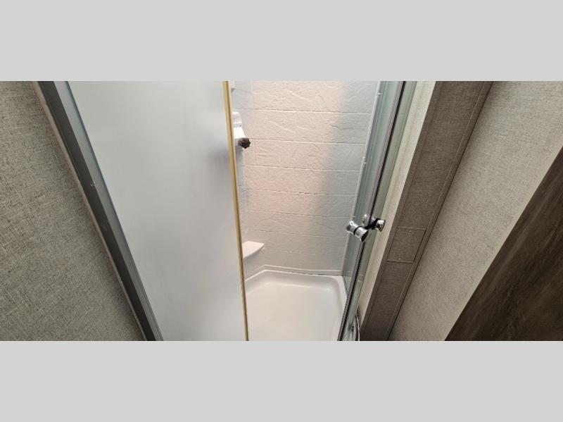 This Wildwood X-Lite travel trailer has a huge campsite window that will allow you to enjoy the spectacular outside landscape from the comfort of your trailer! You can also enjoy a comfortable area to get cleaned up in with the spacious rear bathroom that has a residential vanity with shower caddy. The front walk-around bed can be sectioned off into a semi-private bedroom by drawing the privacy curtain, and you will find the countertop extension in the kitchen to be useful as you prep dinner or do the dishes.