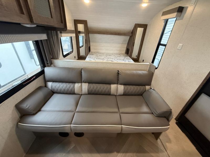 The Forest River Wildwood X-Lite travel trailers are comfortable enough to make any destination feel like home! The Wildwood X-Lite has a one-piece SuperFlex roof, a powder-coated I-beam frame, nitrogen-filled tires, a triple-seal slide system, and a cambered chassis as the base for all of its luxurious additions. Within the reliable construction, you will find excellent interior amenities, like a herringbone luxury vinyl flooring, a shiplap wall board, a huge kitchen window, USB ports, a Bluetooth stereo, and upgraded designer furniture. The Wildwood X-Lite also comes with a pass-through storage compartment so that you can make the most of every adventure by bringing along the essentials.