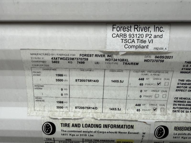 Used 2021 Forest River RV Wildwood X-Lite 241QBXL Travel Trailer