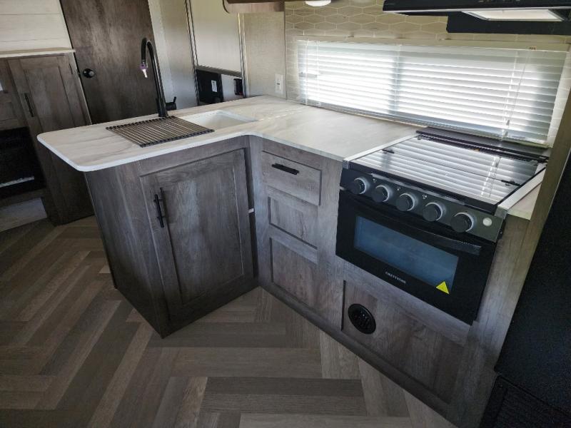 The Forest River Wildwood X-Lite travel trailers are comfortable enough to make any destination feel like home! The Wildwood X-Lite has a one-piece SuperFlex roof, a powder-coated I-beam frame, nitrogen-filled tires, a triple-seal slide system, and a cambered chassis as the base for all of its luxurious additions. Within the reliable construction, you will find excellent interior amenities, like a herringbone luxury vinyl flooring, a shiplap wall board, a huge kitchen window, USB ports, a Bluetooth stereo, and upgraded designer furniture. The Wildwood X-Lite also comes with a pass-through storage compartment so that you can make the most of every adventure by bringing along the essentials.