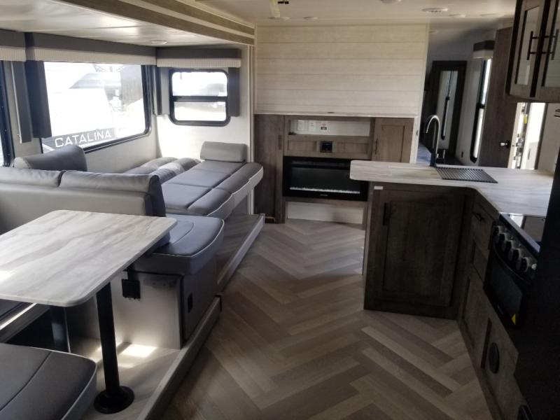 The Forest River Wildwood X-Lite travel trailers are comfortable enough to make any destination feel like home! The Wildwood X-Lite has a one-piece SuperFlex roof, a powder-coated I-beam frame, nitrogen-filled tires, a triple-seal slide system, and a cambered chassis as the base for all of its luxurious additions. Within the reliable construction, you will find excellent interior amenities, like a herringbone luxury vinyl flooring, a shiplap wall board, a huge kitchen window, USB ports, a Bluetooth stereo, and upgraded designer furniture. The Wildwood X-Lite also comes with a pass-through storage compartment so that you can make the most of every adventure by bringing along the essentials.