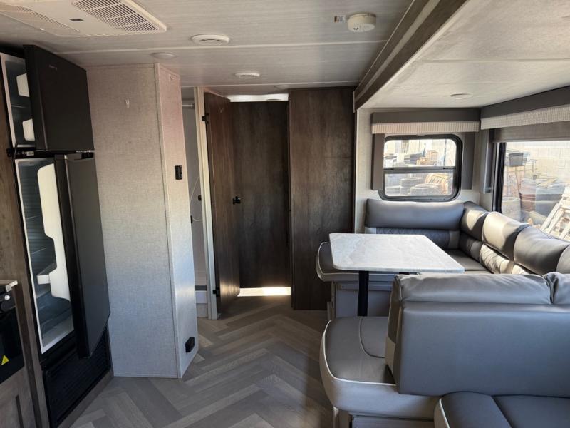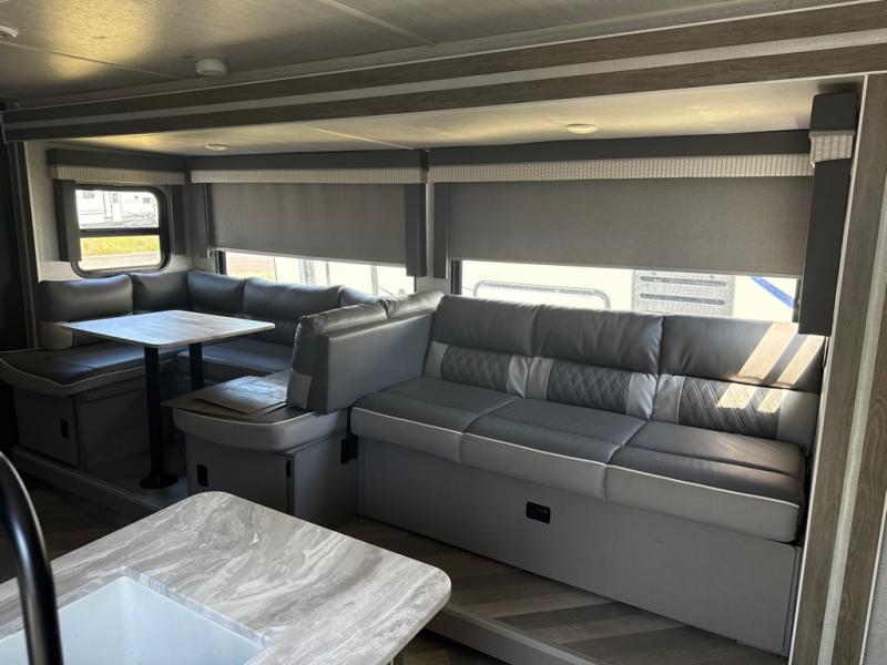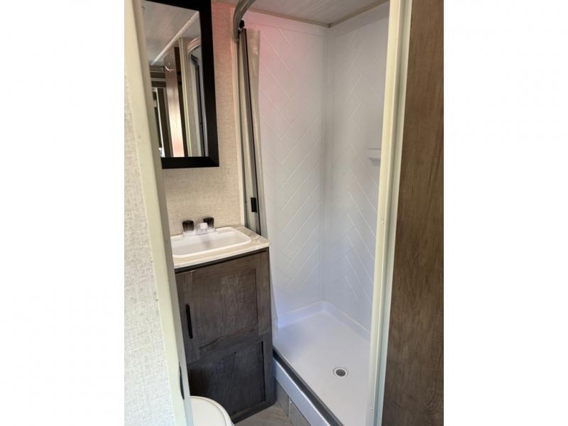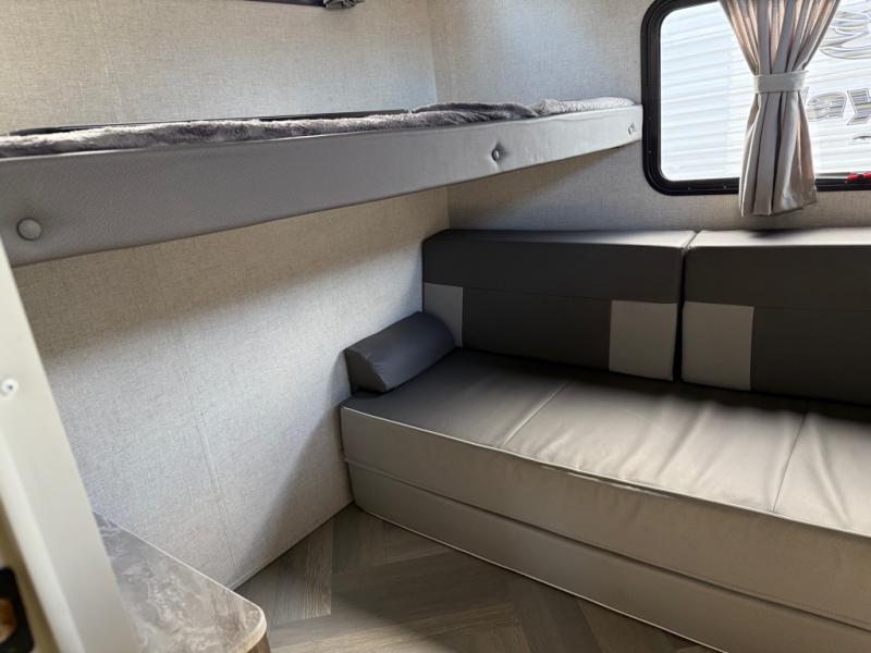 You can do so much with this Wildwood X-Lite travel trailer because it has a U-shaped dinette and sofa out in the main living area and an excellent sleeping space back in the private bunkhouse! These pieces of furniture provide you with versatility while you travel so that your trailer can best fit your lifestyle. The kitchen is completely outfitted with excellent tools, like a three-burner cooktop and microwave, to make all of your meals delicious, and the full bathroom offers you a shower and vanity for the most convenience. The exterior portion of this trailer is complete with a 16' power awning, and there is also a pass-through storage compartment for your camping equipment.