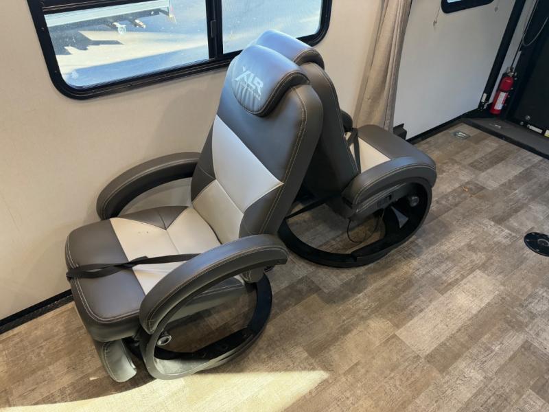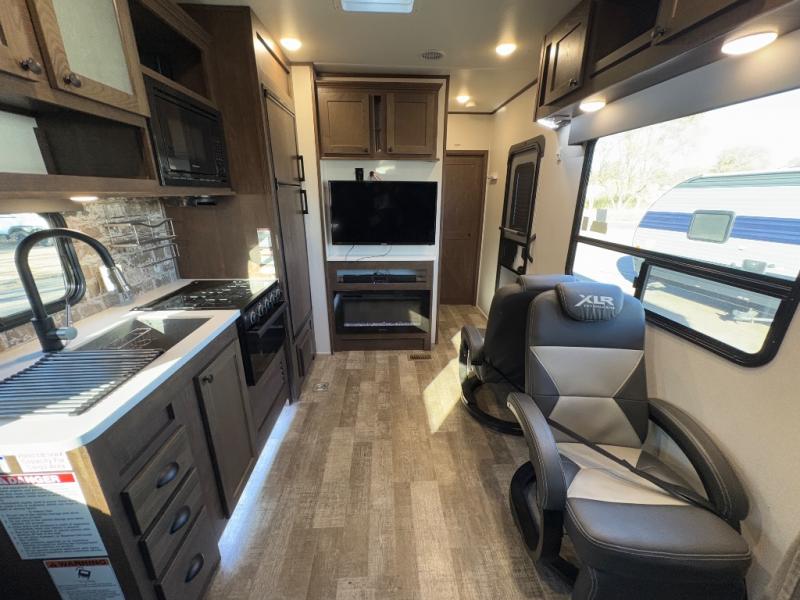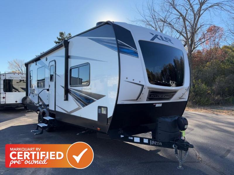 You will be doing yourself and your toys a favor by checking out this XLR Hyper Lite toy hauler! The electric bunk, opposing sofas, and full-size bed allow you to bring along your friends to take part in the fun, and the full kitchen with its 17" oven and cast-iron three-burner cooktop will make meal prep an easy task. The full bathroom is also accommodating with its shower and skylight so that everyone can get cleaned up after a muddy trek out on the trails.