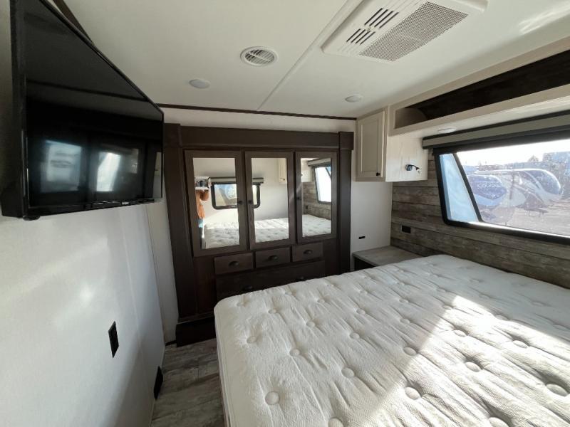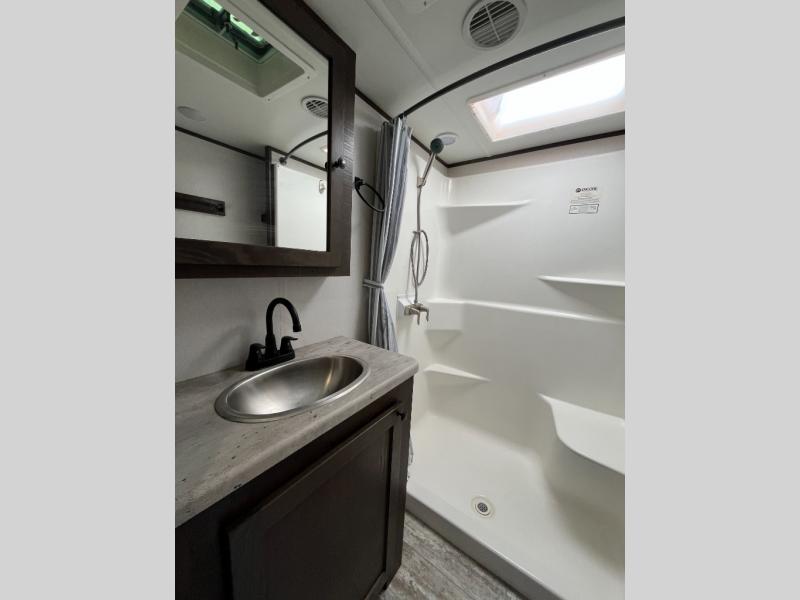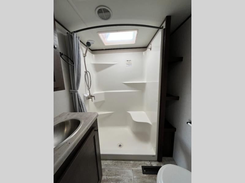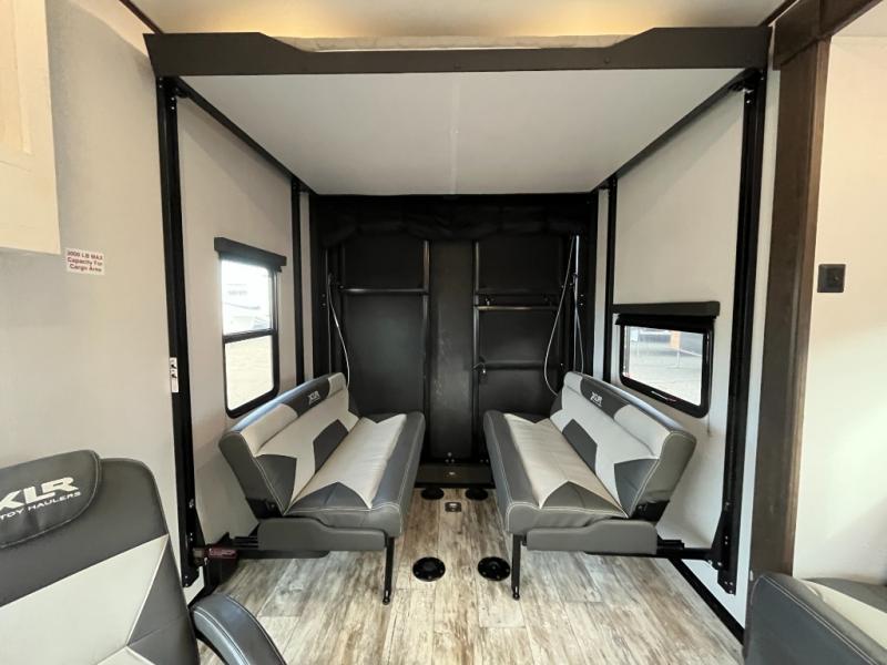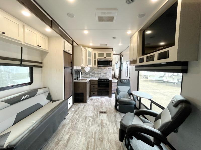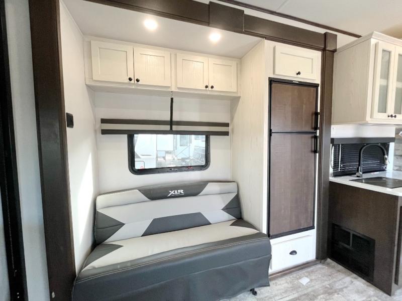 Get ready for fun on the trails with your off-road toys and family of seven, and enjoy comfortable accommodations inside this XLR Nitro! Once your toys are unloaded, you can enjoy the main living and kitchen area with a slide out sofa and refrigerator giving you more floor space to stretch your legs while in the lounge chairs, or dine at the two sofas with tables below the electric queen bed. The cook will love the corner L-shaped kitchen with everything at their fingertips including the residential microwave for those quick meals. The full bathroom offers a shower with a seat to get cleaned up after a fun day outdoors, and the front bedroom is spacious with a slide out wardrobe and comfortable with a king-size bed.