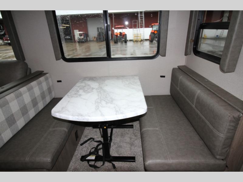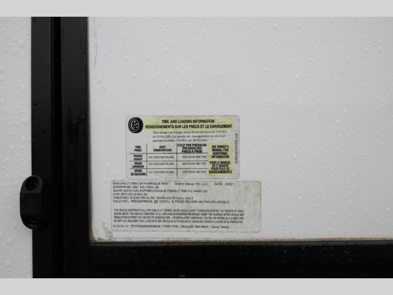 “Pre-Owned, But Built for New Memories.” This Grand Design camper features a private Queen bedroom; large rear bath; u-shaped dinette; dual ACs