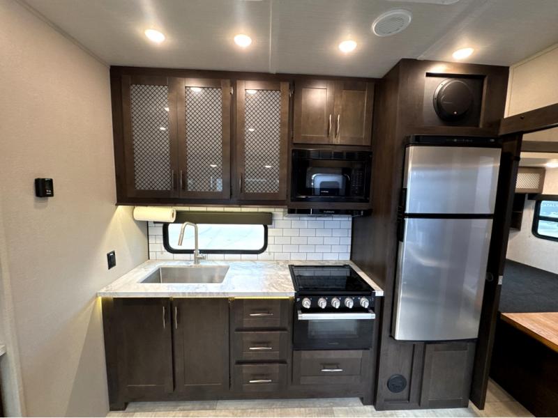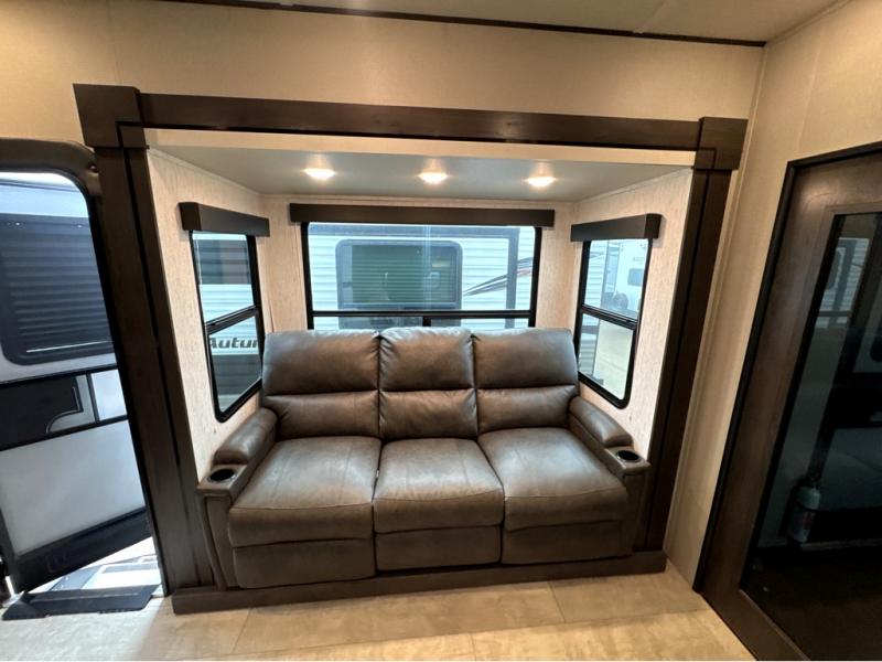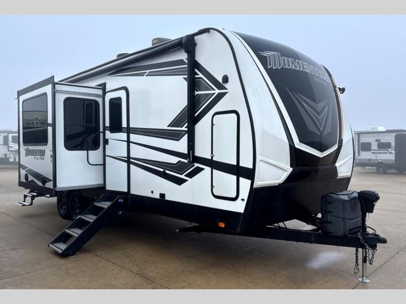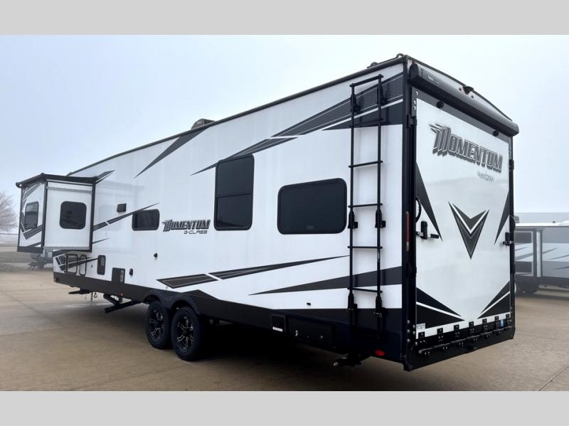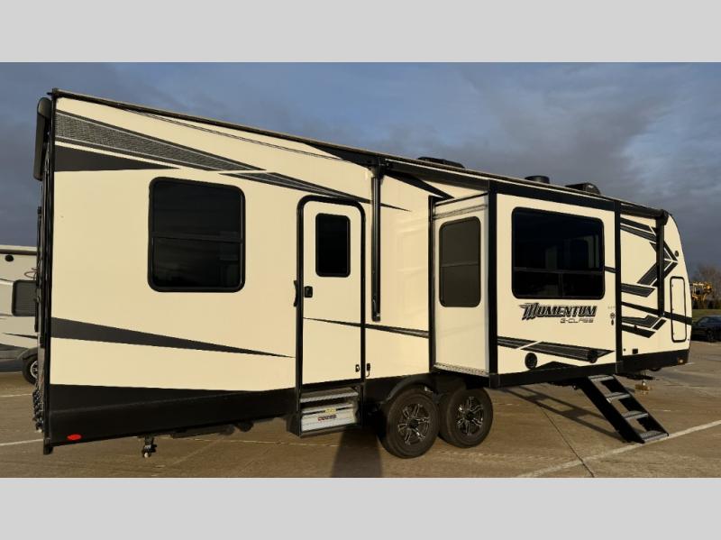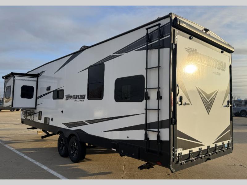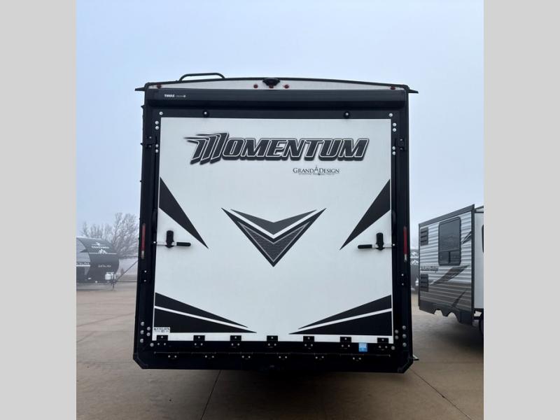 Are you looking for adventure and fun? The Momentum G-Class toy hauler by Grand Design will help you find it! You can explore during any season you choose with the Insulation Package that includes a heated and enclosed underbelly with suspended tanks, a high-capacity furnace, a moisture barrier floor enclosure, and cabinet-mounted heat ducts. Each model includes a 30-gallon fuel station with an interior and exterior gauge, a dovetail rear rend, and 2,500-LB tie-downs anchored into the chassis. Throughout the Momentum G-Class interior, you'll enjoy many comfortable features like large panoramic windows, a shower skylight, USB chargers in the bedroom, and residential cabinetry.