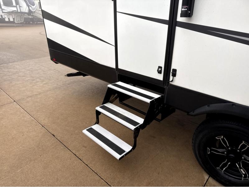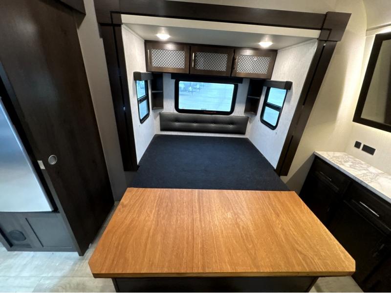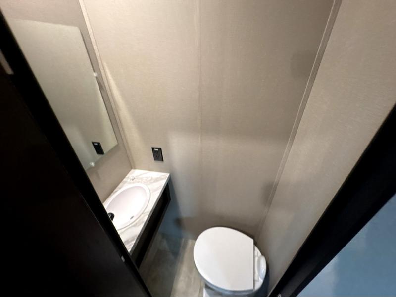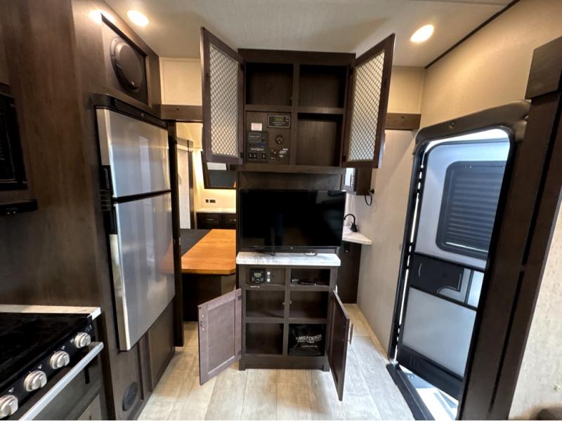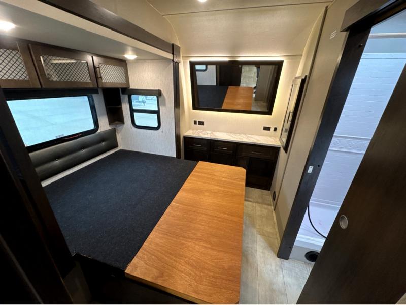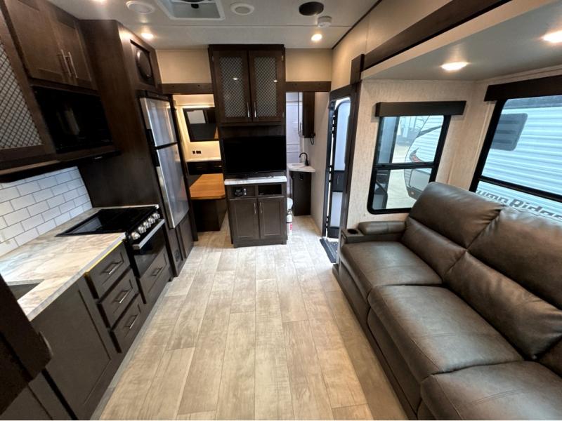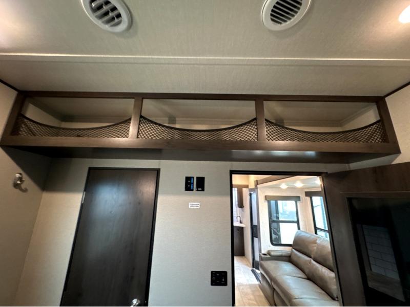 Start your engines for a fun weekend with your toys and your family in this Momentum G-Class toy hauler. The 11' separate garage includes Happi-Jac rollover sofas with a table, a top bunk for the kids, plus a half bath! There is even a second entry door which leads directly into the garage so that you don't have to walk through the entire trailer just to get to your cargo. Now that's helpful! In the front of this unit, you will have your own master suite that has private access to the residential walk-in shower in the dual-entry bathroom. The main living and kitchen area offers everything you need and would want, plus more. This is the one!