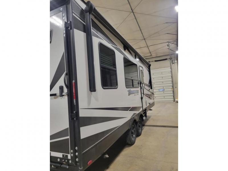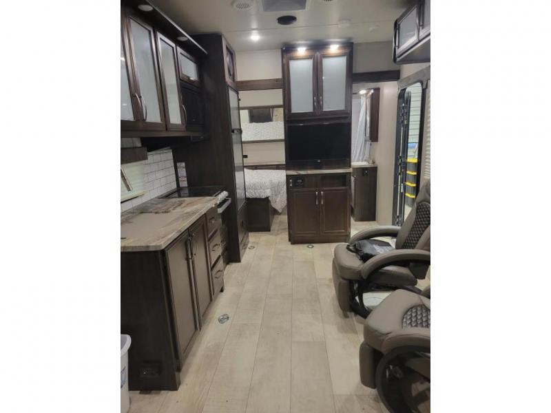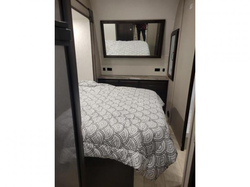You don't have to rough it with all the amenities found in this Momentum G-Class toy hauler including your own master suite with a walk-around queen bed slide and private access into the dual-entry bathroom. The kids or your friends can sleep on the Happi-Jac power bunk above the rollover sofas with a table, and the Euro chairs can become the waiting area for the next rider. Keep the party going all weekend long with your very own fuel station and the Rockford Fosgate speakers. Come see why this model will fit perfectly into your off-road lifestyle!