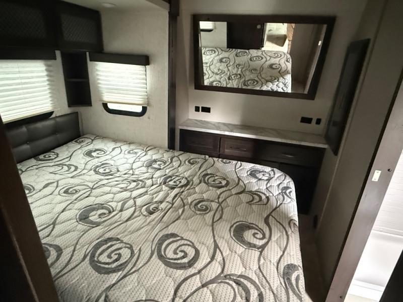 You don't have to rough it with all the amenities found in this Momentum G-Class toy hauler including your own master suite with a walk-around queen bed slide and private access into the dual-entry bathroom. The kids or your friends can sleep on the Happi-Jac power bunk above the rollover sofas with a table, and the Euro chairs can become the waiting area for the next rider. Keep the party going all weekend long with your very own fuel station and the Rockford Fosgate speakers. Come see why this model will fit perfectly into your off-road lifestyle!