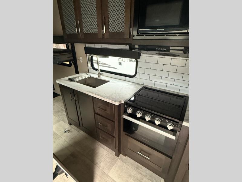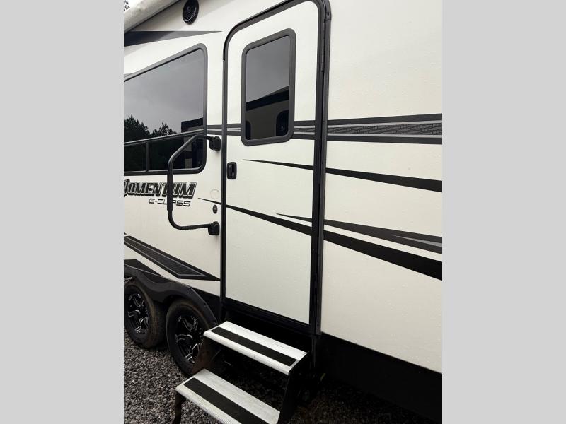 Are you looking for adventure and fun? The Momentum G-Class toy hauler by Grand Design will help you find it! You can explore during any season you choose with the Insulation Package that includes a heated and enclosed underbelly with suspended tanks, a high-capacity furnace, a moisture barrier floor enclosure, and cabinet-mounted heat ducts. Each model includes a 30-gallon fuel station with an interior and exterior gauge, a dovetail rear rend, and 2,500-LB tie-downs anchored into the chassis. Throughout the Momentum G-Class interior, you'll enjoy many comfortable features like large panoramic windows, a shower skylight, USB chargers in the bedroom, and residential cabinetry.