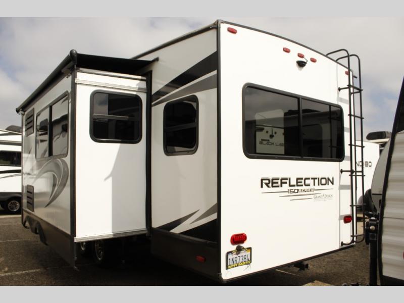 Each Reflection 150 Series fifth wheel by Grand Design allows you to use your half-ton and short-bed truck to tow thanks to the 90-degree turn radius pin box. The Universal All-In-One docking station, the LP Quick Connect, and the "One-Touch" automatic leveling system will make setting up and packing up easy for those weekenders or full-timers that like to move around to see the countryside. Inside, you will love the Gunstock fixtures and hardware, the louvered tread steps to the bedroom, the large panoramic windows, plus the many features in the mandatory packages. It's time to reflect on your wise choice, so choose a Reflection 150 Series today!