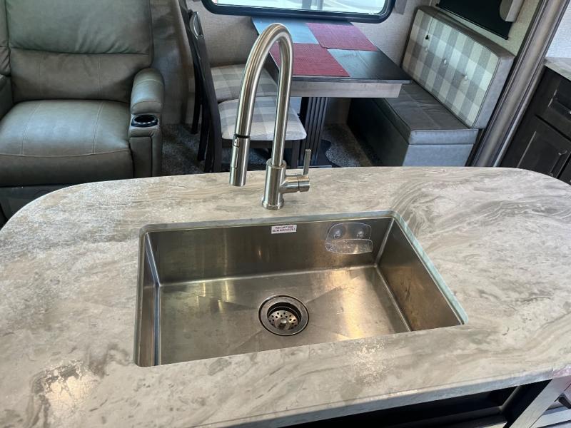With any Reflection 150 Series fifth wheel by Grand Design, there is more available payload capacity and a broader range of half-ton trucks capable of towing this fifth wheel, and no slider hitch is needed thanks to the 90-degree turning radius which makes them short bed friendly and easier to tow. The mandatory Ultimate Power package provides a "One-Touch" automatic leveling system and a detachable power cord with LED light for easy setup, plus motion sensor pass-through lighting and entry lighting, and the Tire Linc TPMS will help you stay safe on the road. The interior offers residential luxury from the cabinetry and gunstock hardware plus the booth dinette to the residential-style window treatment. Make your refined decision today!
