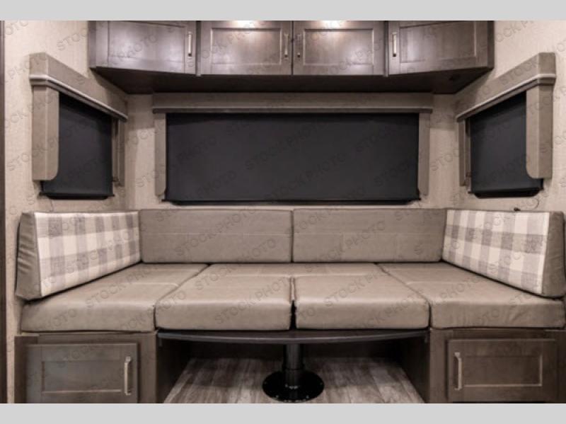 Rear dining floorplan with a spacious U-shaped dinette and panoramic views