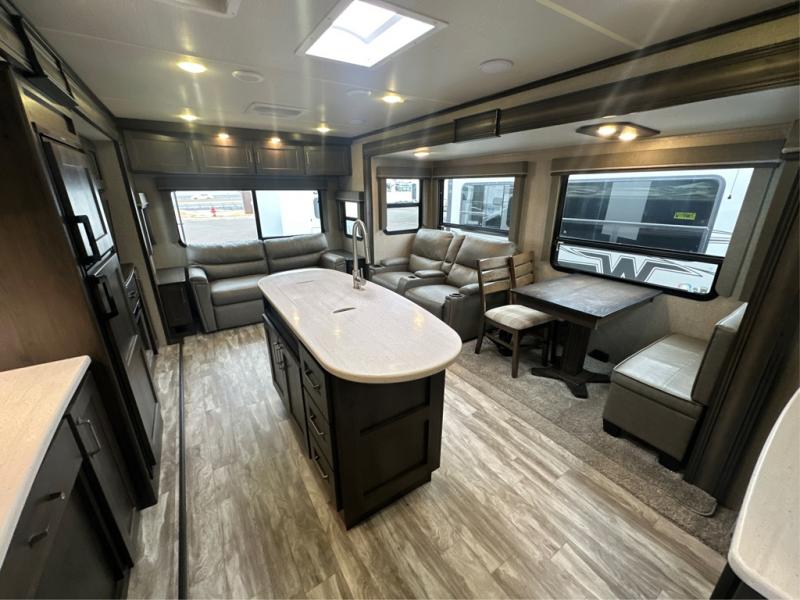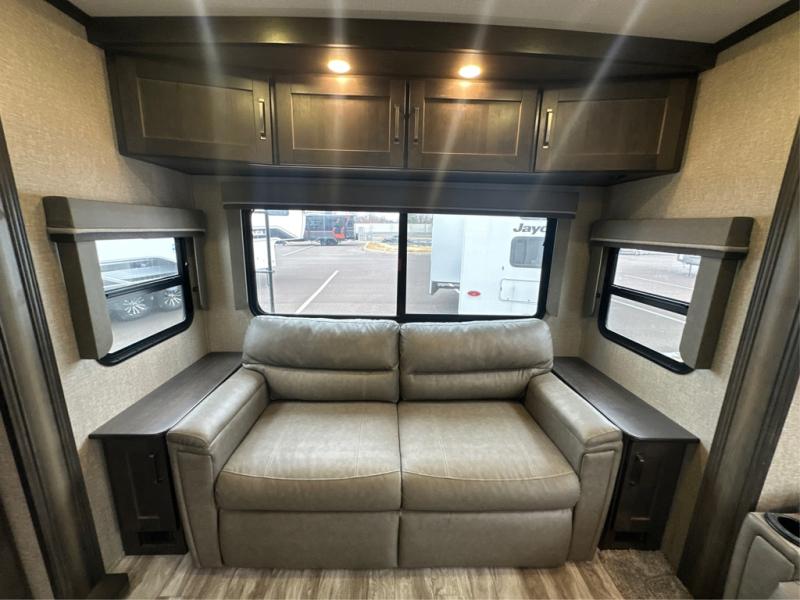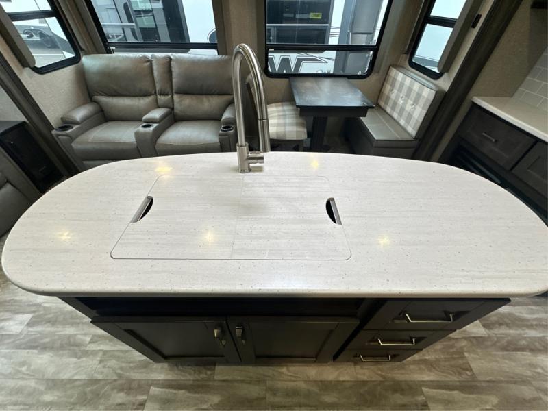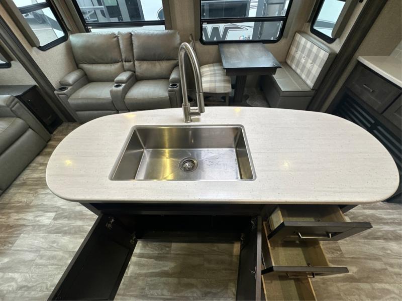 Luxury, value, and towability is what you will find in every one of these Reflection fifth wheels and travel trailers by Grand Design! The mandatory Arctic 4-Seasons Protection package allows you to camp all year round with the 35k BTU high capacity furnace, the Thermofoil insulation, and the heated and enclosed underbelly with circulating heat. Their gourmet kitchens have everything you will need to create home cooked meals including a deep, seated stainless steel sink with a high rise faucet with a pull down sprayer to make clean up easier too. The ductless flooring means there are no floor vent covers to collect dirt or debris, and the universal docking station is an all in one heated location with an EZ winterization system. Easily open the aluminum entry steps that won't rust or bind and start your next camping trip in true luxury!