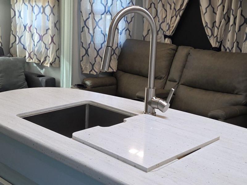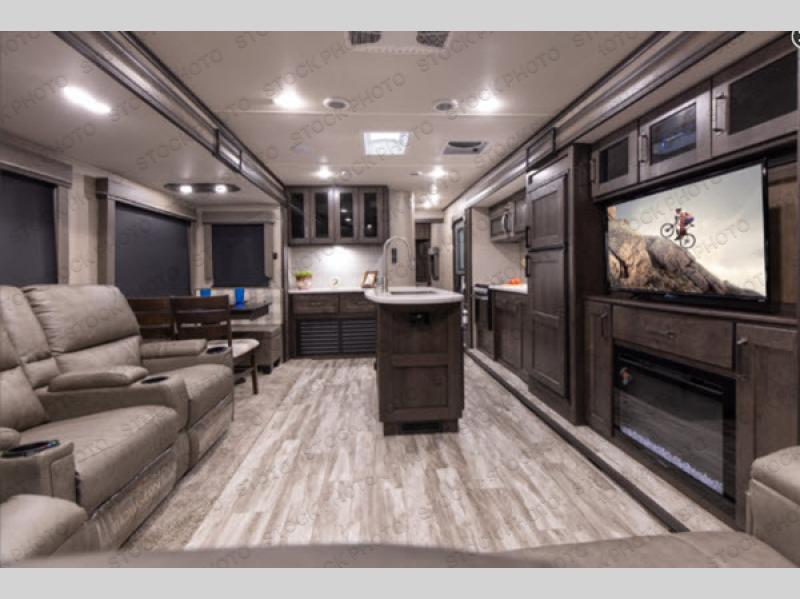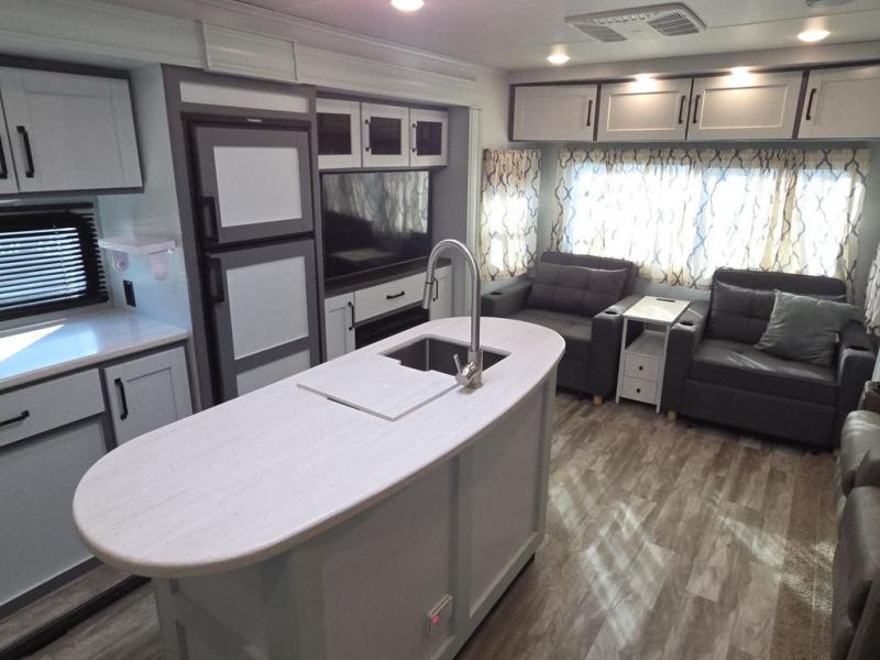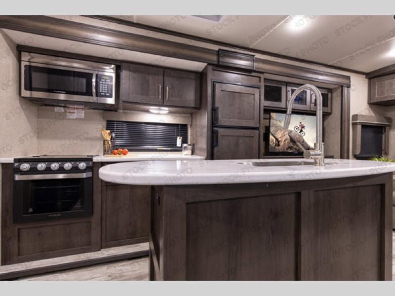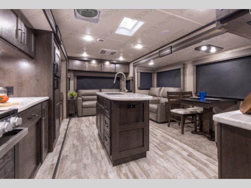 Luxury, value, and towability is what you will find in every one of these Reflection fifth wheels and travel trailers by Grand Design! The mandatory Arctic 4-Seasons Protection package allows you to camp all year round with the 35k BTU high capacity furnace, the Thermofoil insulation, and the heated and enclosed underbelly with circulating heat. Their gourmet kitchens have everything you will need to create home cooked meals including a deep, seated stainless steel sink with a high rise faucet with a pull down sprayer to make clean up easier too. The ductless flooring means there are no floor vent covers to collect dirt or debris, and the universal docking station is an all in one heated location with an EZ winterization system. Easily open the aluminum entry steps that won't rust or bind and start your next camping trip in true luxury!
