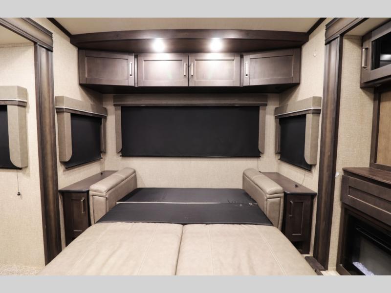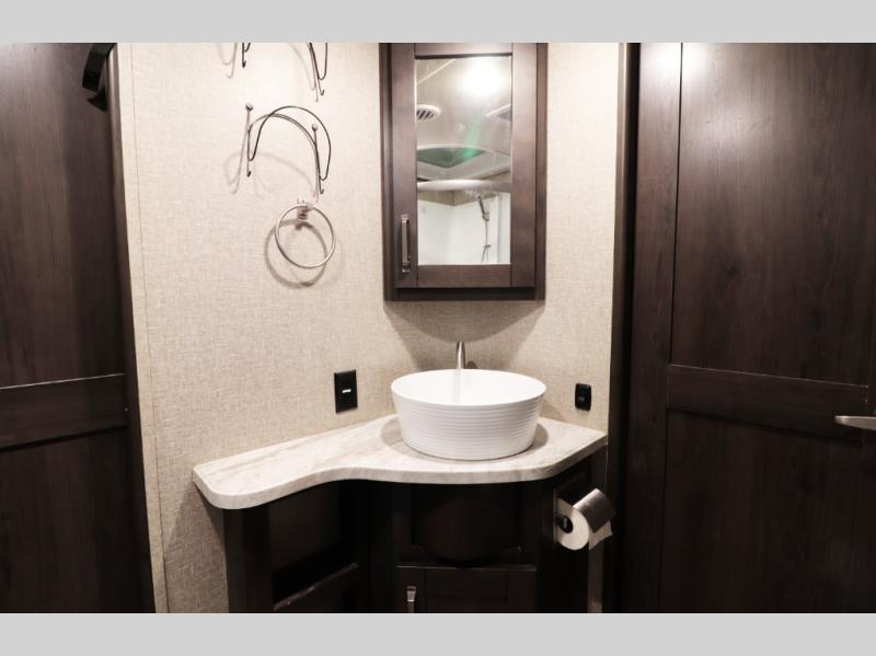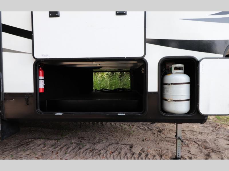 Generous Holding Tanks: Fresh water – 60 gal; Gray water – 87 gal; Black water – 47 gal. Enough capacity for long weekends or extended travel.