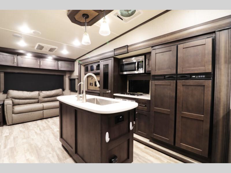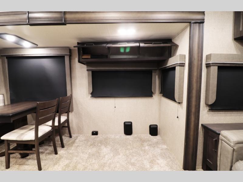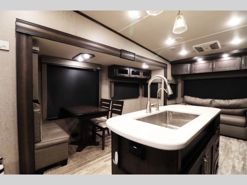 Rear Living Layout with 3 Slide-Outs: Expands the living area for generous space. The rear lounge design is perfect for entertaining, relaxing, or just lounging with views.