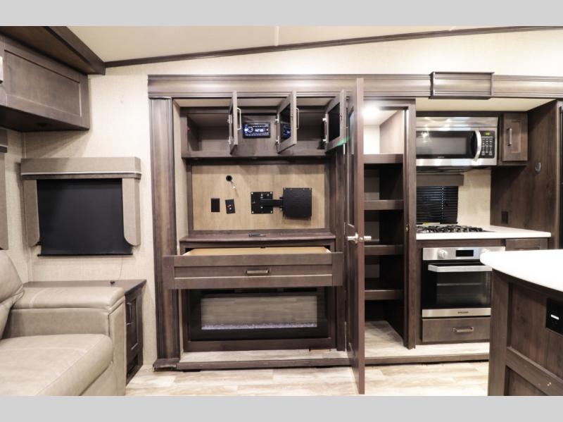 Functional living & storage: The 3 slides open up living, kitchen, and bedroom spaces. Plenty of cabinetry, big pantry/refrigerator, and usable interior layout make meal prep, living, and rest comfortable.