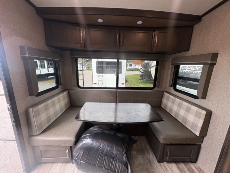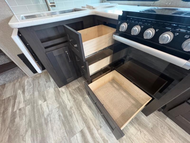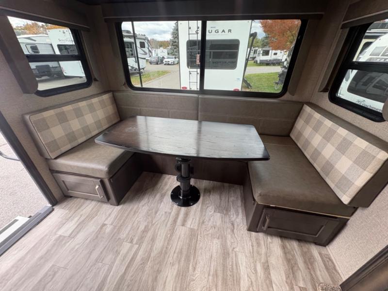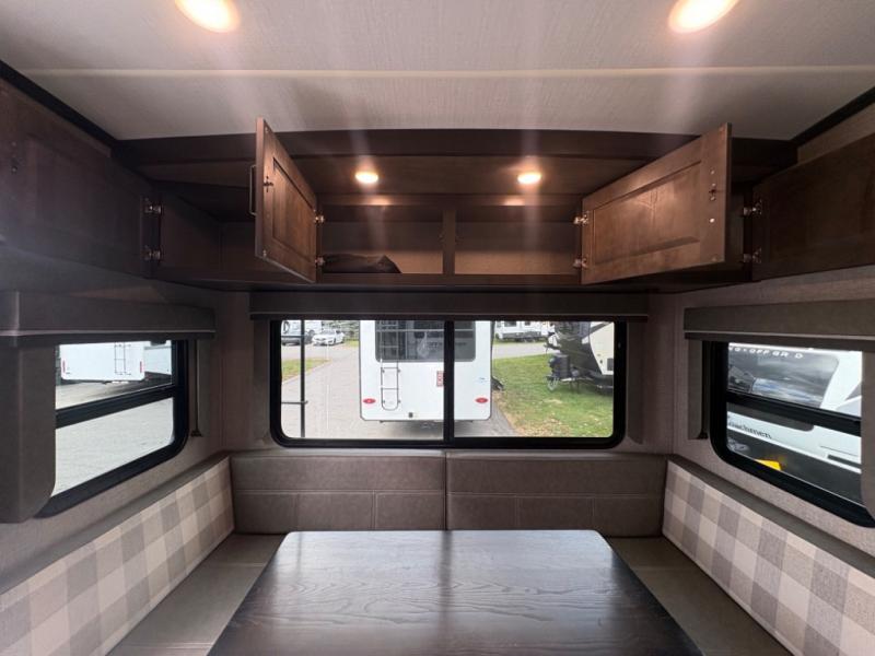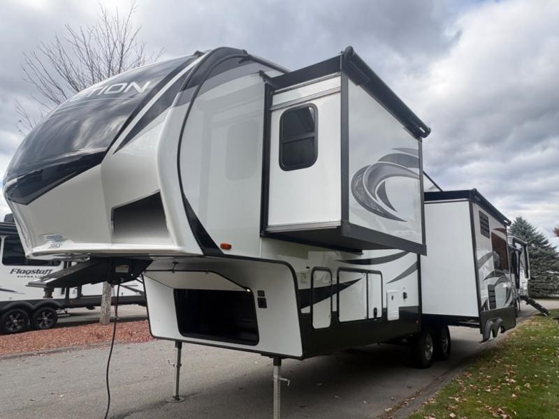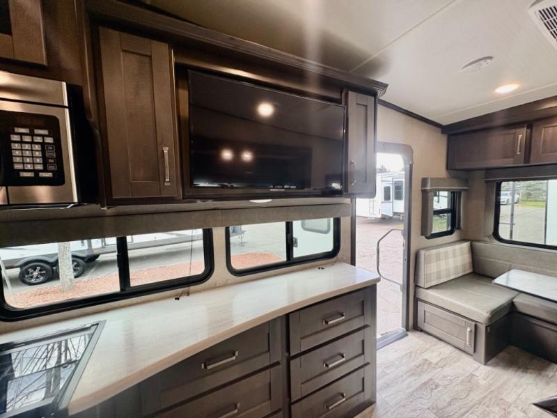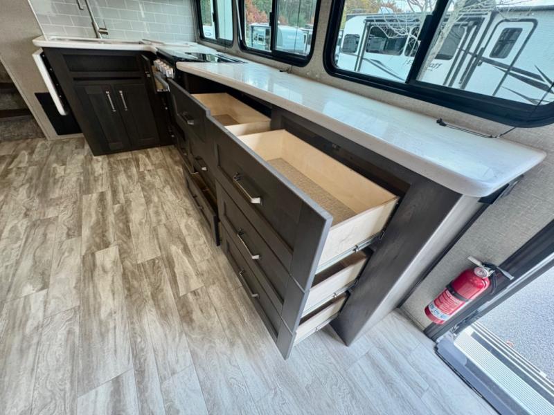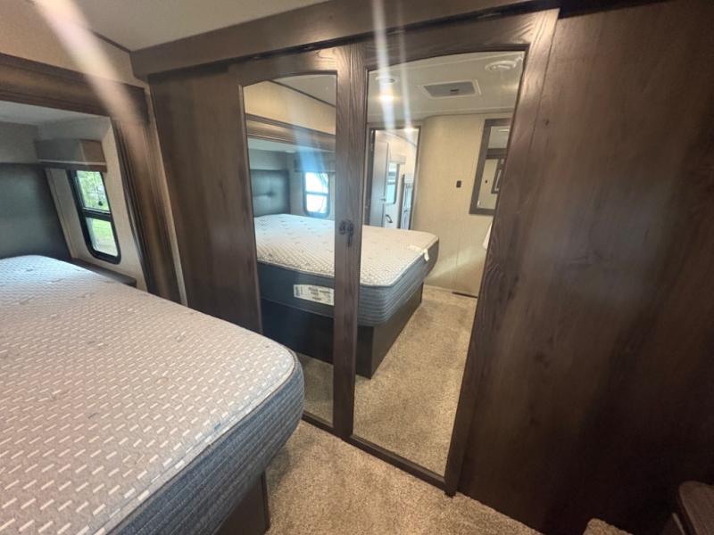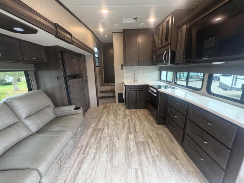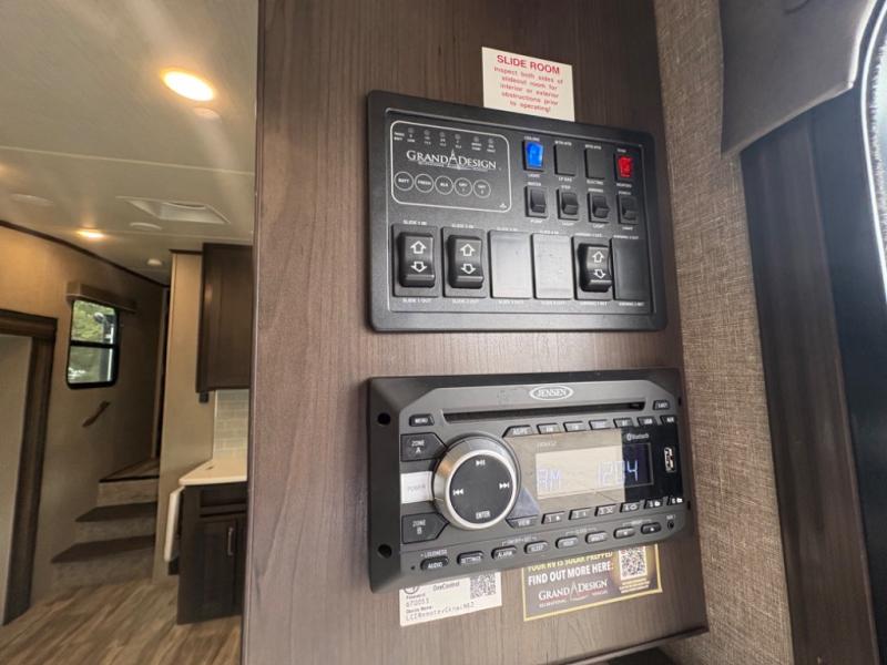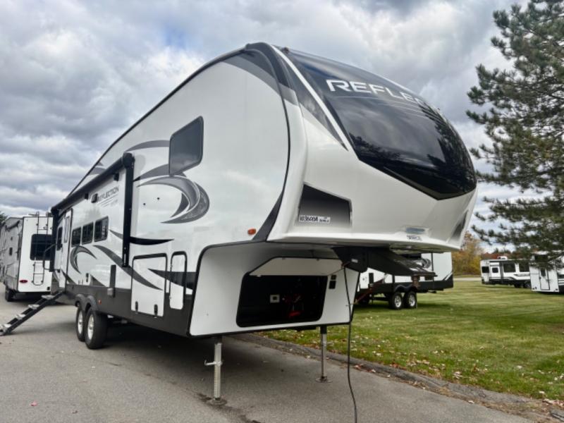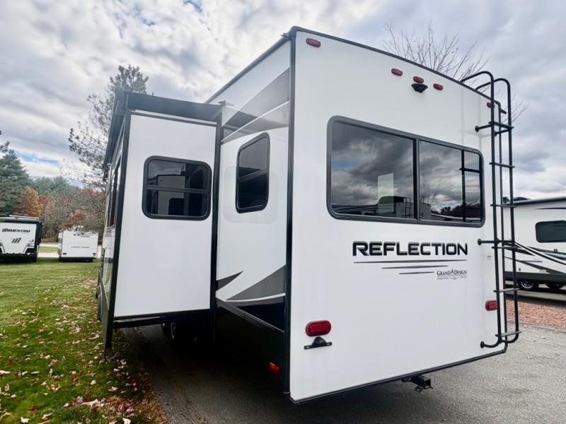 Luxury, value, and towability is what you will find in every one of these Reflection fifth wheels and travel trailers by Grand Design! The mandatory Arctic 4-Seasons Protection package allows you to camp all year round with the 35k BTU high capacity furnace, the Thermofoil insulation, and the heated and enclosed underbelly with circulating heat. Their gourmet kitchens have everything you will need to create home cooked meals including a deep, seated stainless steel sink with a high rise faucet with a pull down sprayer to make clean up easier too. The ductless flooring means there are no floor vent covers to collect dirt or debris, and the universal docking station is an all in one heated location with an EZ winterization system. Easily open the pivoting AXISTEP which will help eliminate debris and moisture from falling inside the unit and also goes all the way down to the ground to make it more stable when entering. Start your next camping trip in true luxury!