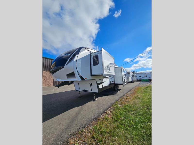 Luxury, value, and towability is what you will find in every one of these Reflection fifth wheels and travel trailers by Grand Design! The mandatory Arctic 4-Seasons Protection package allows you to camp all year round with the 35k BTU high capacity furnace, the Thermofoil insulation, and the heated and enclosed underbelly with circulating heat. Their gourmet kitchens have everything you will need to create home cooked meals including a deep, seated stainless steel sink with a high rise faucet with a pull down sprayer to make clean up easier too. The ductless flooring means there are no floor vent covers to collect dirt or debris, and the universal docking station is an all in one heated location with an EZ winterization system. Easily open the pivoting AXISTEP which will help eliminate debris and moisture from falling inside the unit and also goes all the way down to the ground to make it more stable when entering. Start your next camping trip in true luxury!