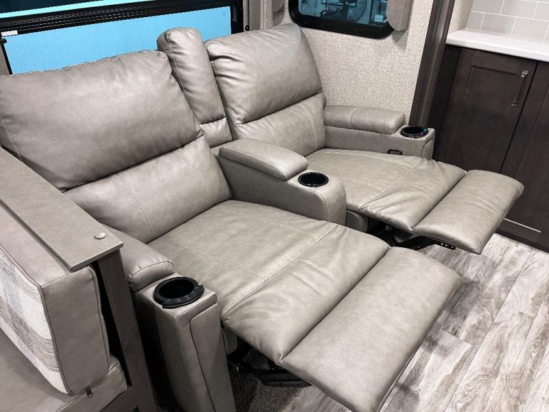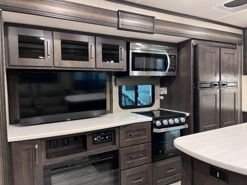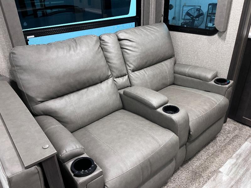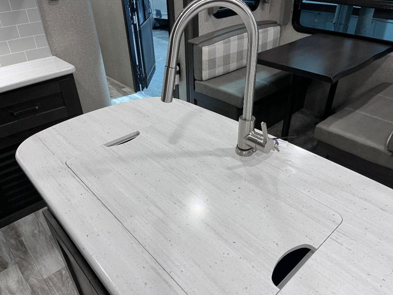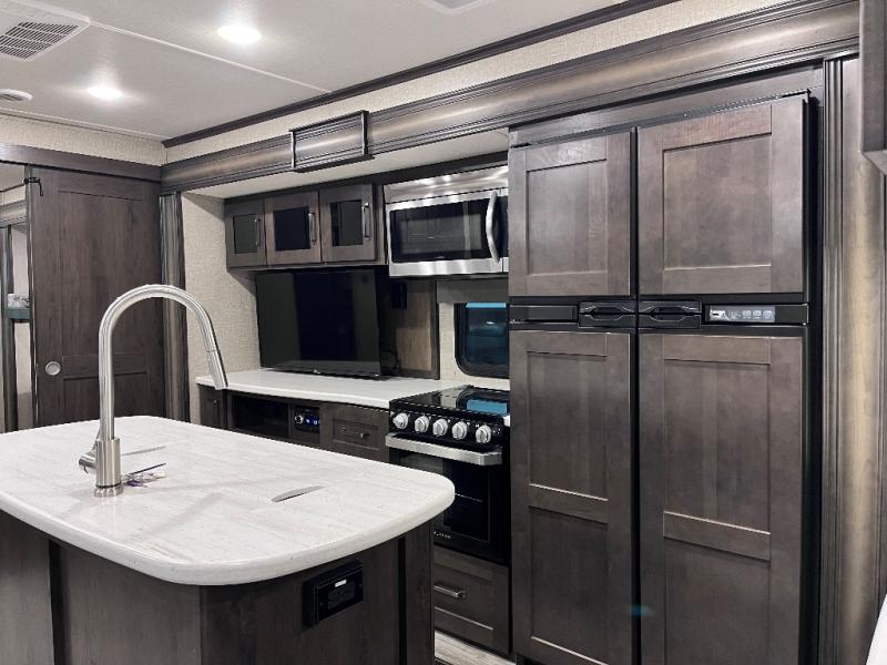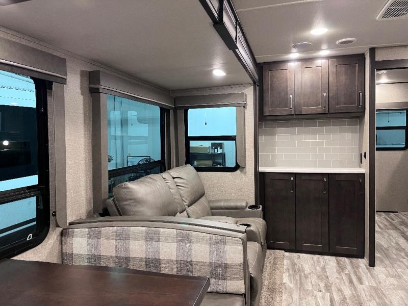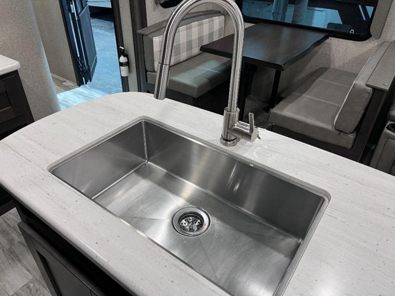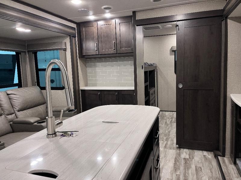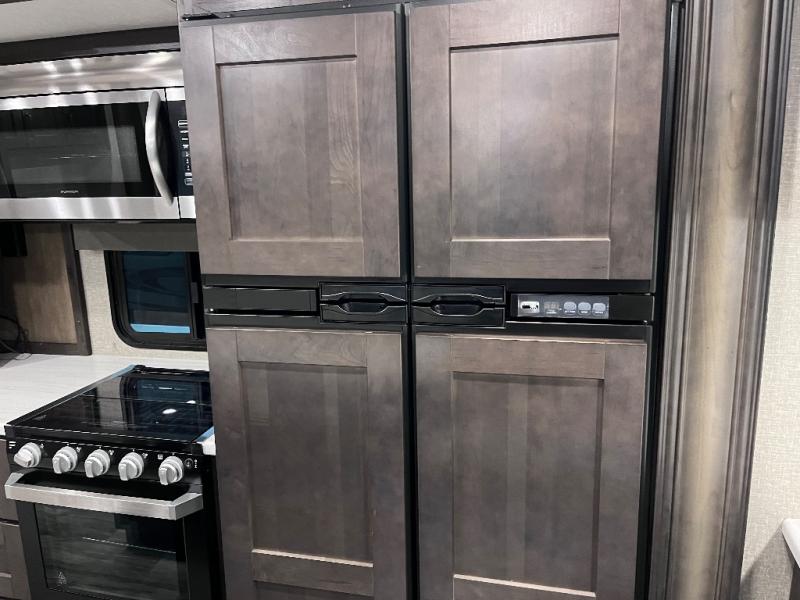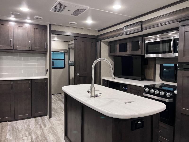 Luxury, value, and towability is what you will find in every one of these Reflection fifth wheels and travel trailers by Grand Design! The mandatory Arctic 4-Seasons Protection package allows you to camp all year round with the 35k BTU high capacity furnace, the Thermofoil insulation, and the heated and enclosed underbelly with circulating heat. Their gourmet kitchens have everything you will need to create home cooked meals including a deep, seated stainless steel sink with a high rise faucet with a pull down sprayer to make clean up easier too. The ductless flooring means there are no floor vent covers to collect dirt or debris, and the universal docking station is an all in one heated location with an EZ winterization system. Easily open the aluminum entry steps that won't rust or bind and start your next camping trip in true luxury!
