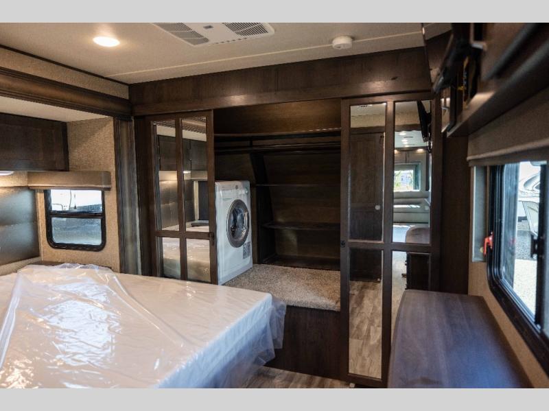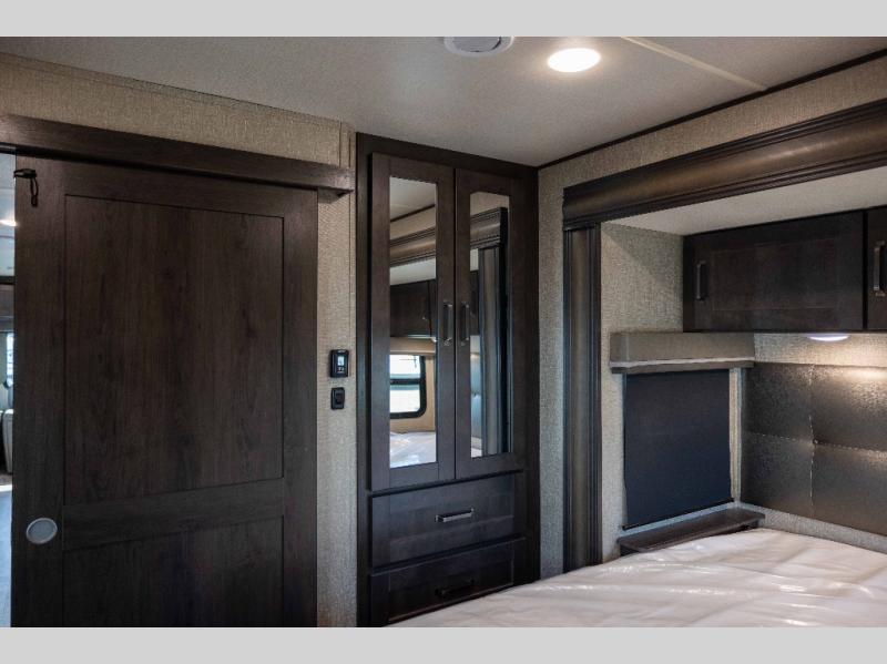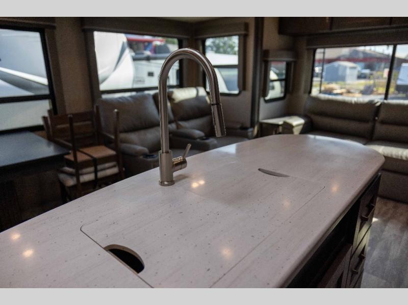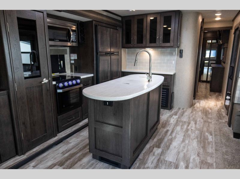 Luxury, value, and towability is what you will find in every one of these Reflection fifth wheels and travel trailers by Grand Design! The mandatory Arctic 4-Seasons Protection package allows you to camp all year round with the 35k BTU high capacity furnace, the Thermofoil insulation, and the heated and enclosed underbelly with circulating heat. Their gourmet kitchens have everything you will need to create home cooked meals including a deep, seated stainless steel sink with a high rise faucet with a pull down sprayer to make clean up easier too. The ductless flooring means there are no floor vent covers to collect dirt or debris, and the universal docking station is an all in one heated location with an EZ winterization system. Easily open the aluminum entry steps that won't rust or bind and start your next camping trip in true luxury!