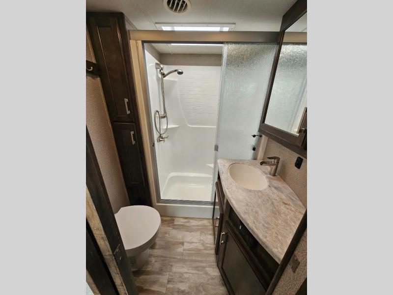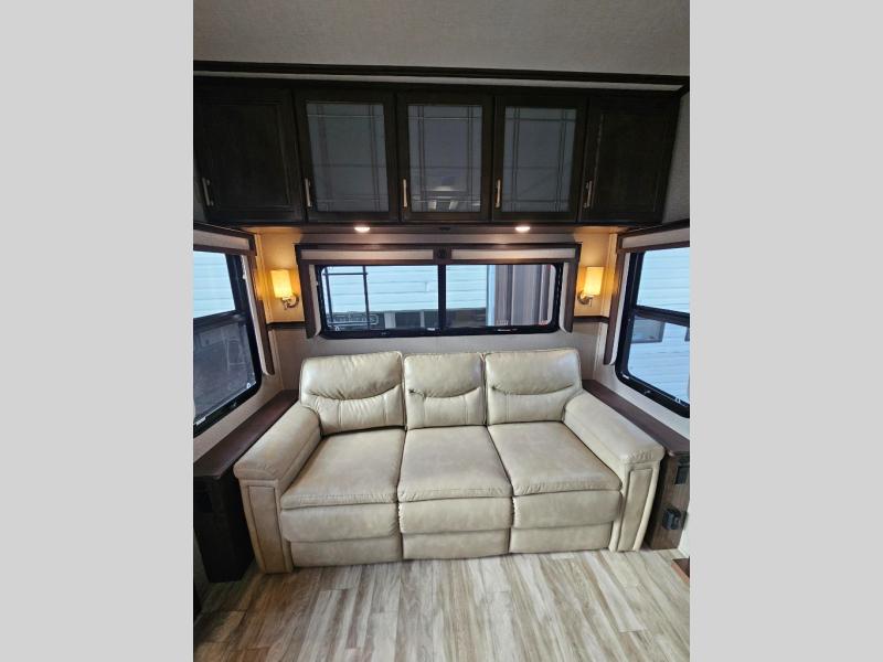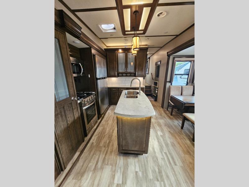 With each Solitude fifth wheel by Grand Design, you will receive refined residential finishes and affordable luxury for your extended stays or weekend getaways. From the solid foundation that rests upon an exclusive superchassis and the maximum insulation to the taller ceilings, taller and deeper cabinets, and the power reclining theatre seating with removable swivel tables and heat and massage, you will be impressed! The pet dish drawer, the Stealth AC system, and the Weather-Tek package that allows you to travel during any season will also give you many more reasons to love everything about your Solitude. It's time to redefine luxury living wherever you decide to land.