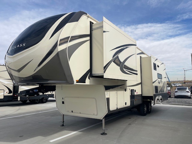 With any Grand Design Solitude S-Class fifth wheel you can enjoy years of full-time RVing or weeklong trips during any season thanks to the Weather-Tek package which provides maximum insulation from the thermal roof design, the fully laminated walls, the triple insulated main floor, and the exclusive Rail-Tite underbelly seal and insulated gooseneck. Each is built on an exclusive superchassis with 101" wide body construction for more livable floor space, and includes a wide rail design with reinforced axle hangers. The interior offers power theater seats with heat and massage for maximum comfort, no carpet in slides/flush floor kitchen slides, solid surface bathroom countertops for style and easy care, plus so much more! Choose your Solitude S-Class and start living the dream!