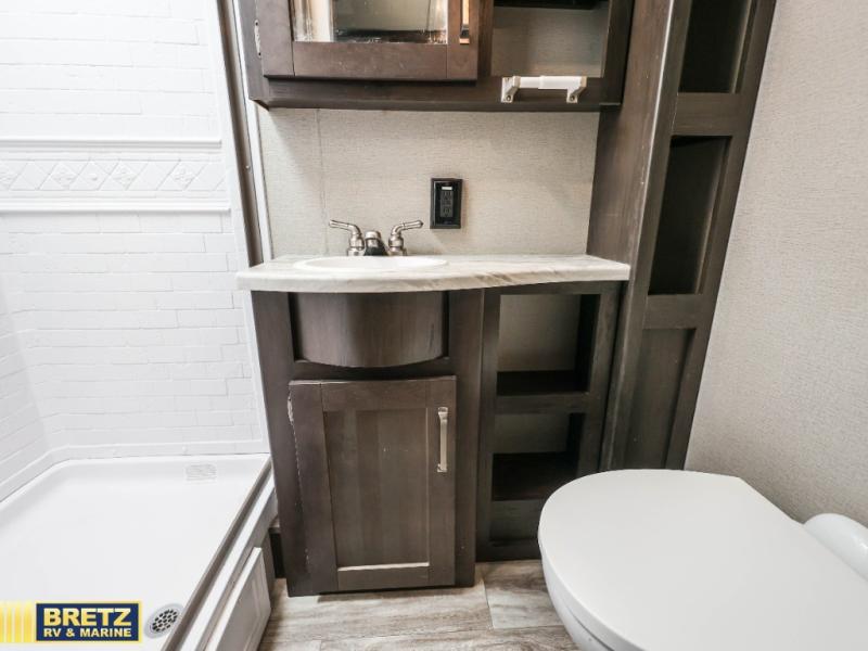 You won't want to camp any other way after seeing this Transcend Xplor travel trailer! It features a front queen bed with tapered overhead cabinets, wardrobes on either side of it, and a privacy curtain to get dressed for the day in privacy. Once you're ready, you can head into the kitchen and fry up some delicious bacon on the three-burner cooktop, and you can even fill up your pet's dish bowl conveniently located in the pet drawer below the double-door refrigerator. The U-shaped dinette slide welcomes you to comfortably enjoy your breakfast, but you can also switch it out for the optional theatre seats instead. Inside the rear corner bathroom, you will find everything you need to get squeaky clean after a fun day outdoors, like the walk-in shower, the linen closet, and the vanity sink!