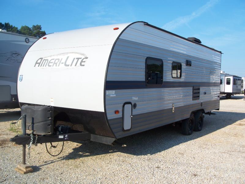 The Ameri-Lite Ultra Lite travel trailers by Gulf Stream are the perfect RV for families wanting to start their camping lifestyle, but not break the bank. These lightweight units include quality construction, such as a tubular steel cambered frame, strong wood roof decking, and full-width steel outriggers for maximum support. The front power hitch jack and four stabilizer jacks will make set-up hassle-free once you arrive at the campground, and you can put out the electric awning to rest in the shade when you're done. Each model includes convenient amenities, like the 13,500 BTU A/C, the 6 gallon DSI water heater, a central control panel, and multiple USB ports for your tablet, phone, and camera! The inside is designed to make you feel at home with radiant LED lighting, designer kitchen backsplash, pleated privacy shades, craft-made cabinetry, plus many more features. Start your RV lifestyle with an affordable, lightweight Ameri-Lite Ultra Lite travel trailer today!