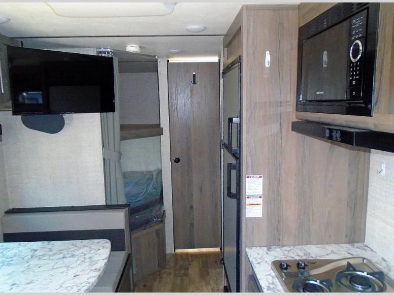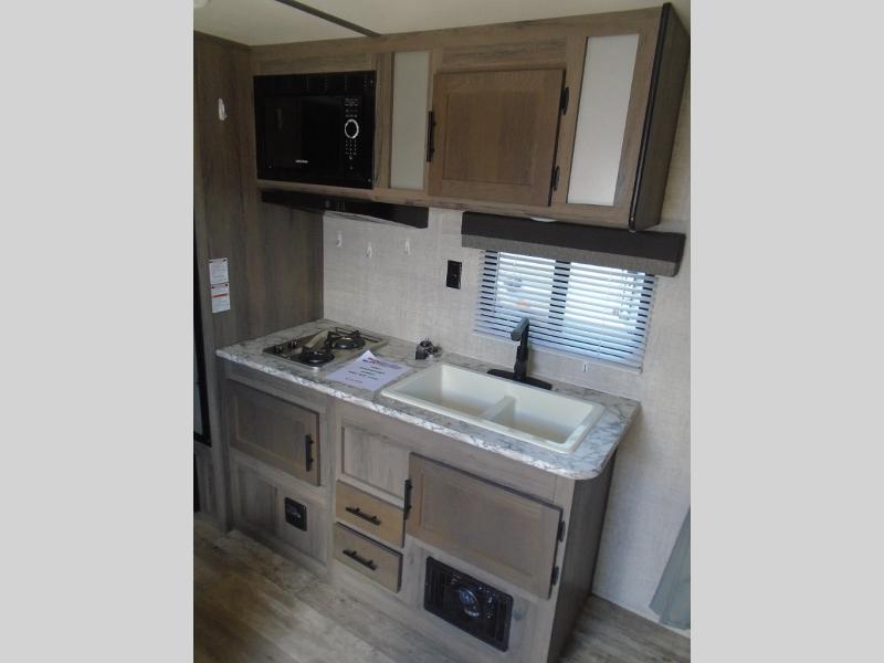 NEW LOWER PRICEThis Travel Trailer sleeps 7 people Also Includes: * DOUBLE BUNKS * ROOF AC * SINGLE DOOR REFRIGERATOR * BOOTH DINETTE * FRONT QUEEN BED * REAR CORNER BATH * BATTERY * GRAB HANDLE * MICROWAVE * 2 BURNER STOVE