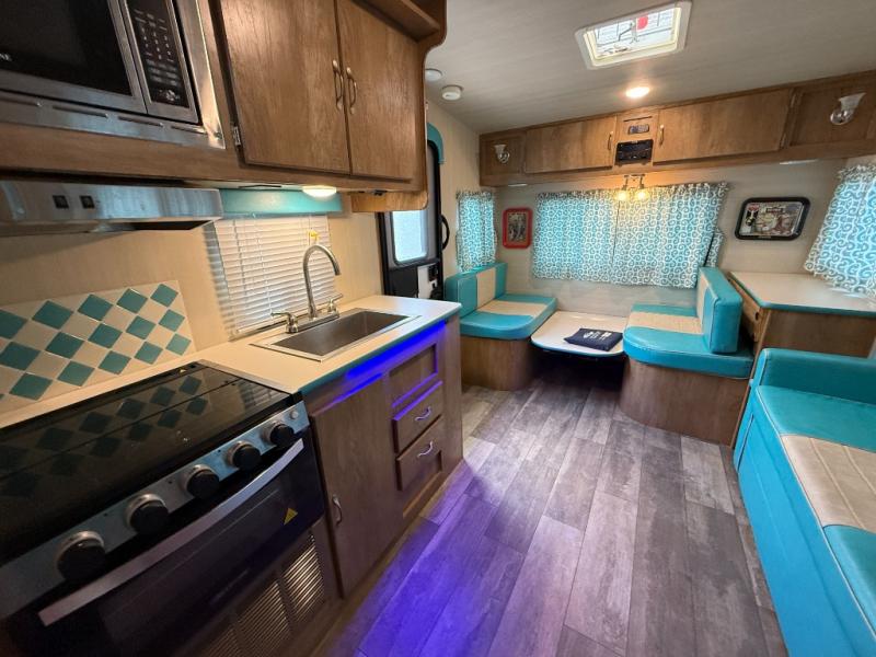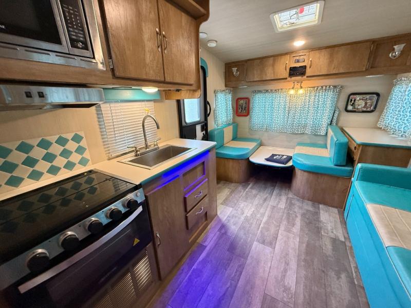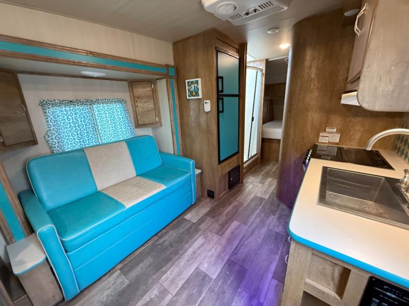 Any Gulf Stream Vintage Cruiser travel trailer will bring you a lightweight and fun vintage vibe from the 50's, a time when life was simpler and the pace was slower and more relaxed. These 20'-26' models put state-of-the-art conveniences into the look of yesteryear to bring you a camping experience like none other. The Vintage Cruiser can easily be towed behind your family's SUV or minivan, and each unit features high-performance vinyl flooring, fine-grained cabinetry, and a vintage interior design. You can enjoy your trailer for years to come since these models are constructed with durable materials, such as a one-piece fiberglass roof, a six-sided welded aluminum frame, and laminated fiberglass sidewalls with an exterior layer of Azdel composite substrate. Outside, you'll find many convenient features to make each trip hassle-free, like the easy-lube axles, the convenient hitch light, and the electric awning with LED lights!