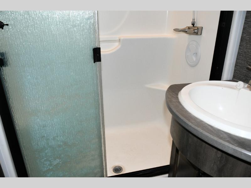 The rain glass shower surround adds a touch of spa-like luxury to your daily routine, while the thoughtful layout ensures convenience whether you’re at a full-service resort or off-grid retreat. -