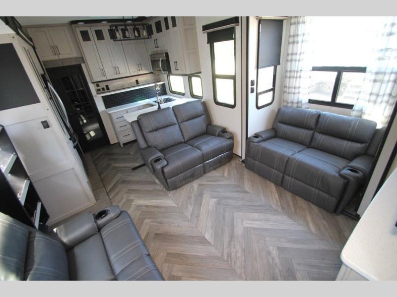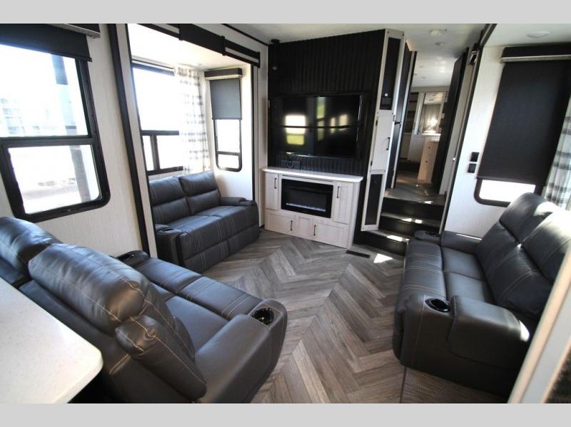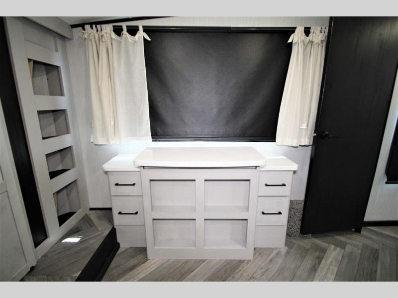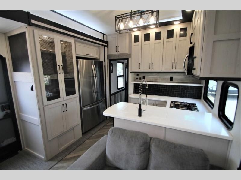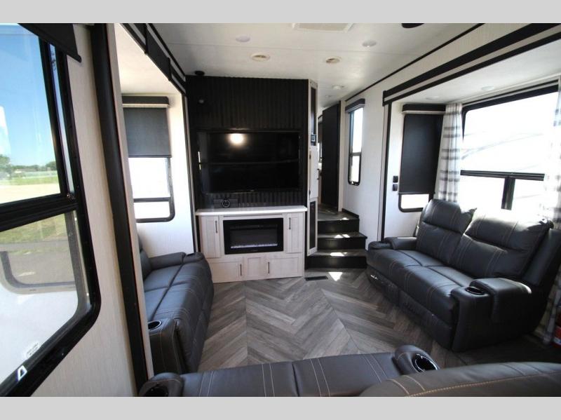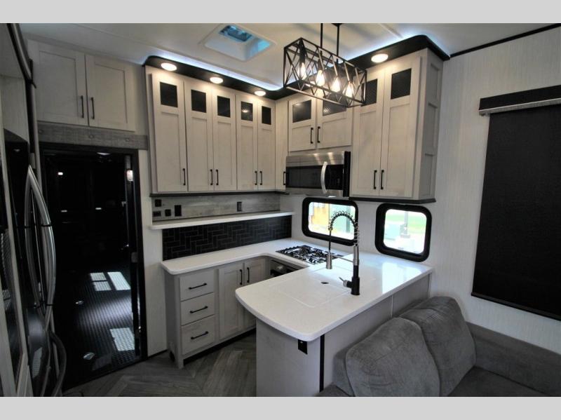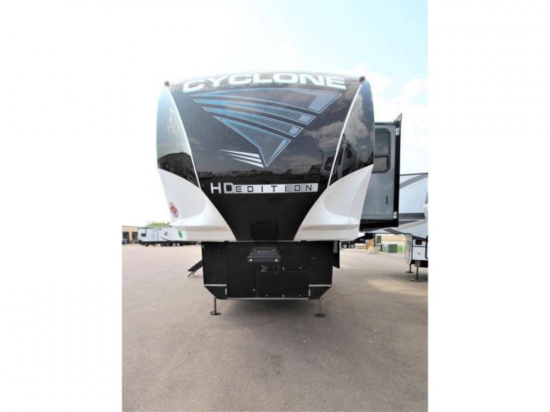 Each one of these Heartland Cyclone fifth wheel toy haulers offer luxury, toy hauler capacity, and a residential look and feel! You will find comfort and convenience from the inside out starting with the "Swift Space" pull out dresser work station and the culinary kitchen work space to the patent pending Stor-Mor exterior storage with three-sided access to the basement with 30% more capacity for your gear. The adjustable sunlight blackout shades make it easy for you to take an afternoon nap so you can re-charge and get back to riding the trails. These units are strong, lightweight, weather and temperature resistant, and easy to haul with the Azdel laminated sidewalls and composite substrate. An ultimate outdoor kitchen combination is just waiting for you to grill up your best burgers while taking in your beautiful scenery!