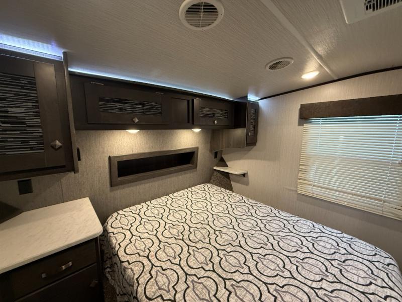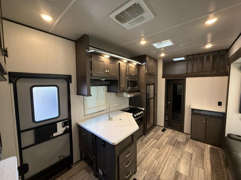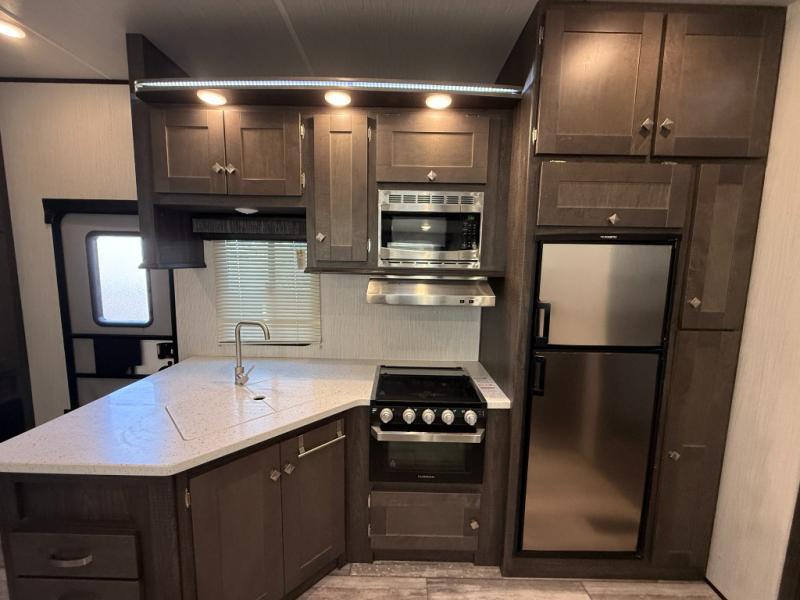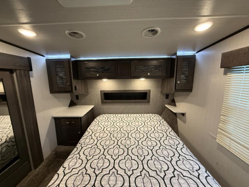 You will find indoor luxuries with an outdoor lifestyle in any one of these Heartland Gravity toy haulers! The 30 gallon lockable fueling station makes it easy to fuel up your favorite off-road toys and you can even unlock it with your units keys. The ramp door patio kit will create the perfect outdoor hangout spot, and the MORryde solid step helps you to safely enter and exit. You can go off grid thanks to the 20 watt solar panel with inverter prep and know that your toys will arrive in the same spot you left them with the integrated frame welded tie downs. The Dexter axles with G range tires ensures you will have a safe trip too. You can even keep your electronics fully charged with the wireless charging ports and keep yourself fully charged sleeping on the Queen bed!