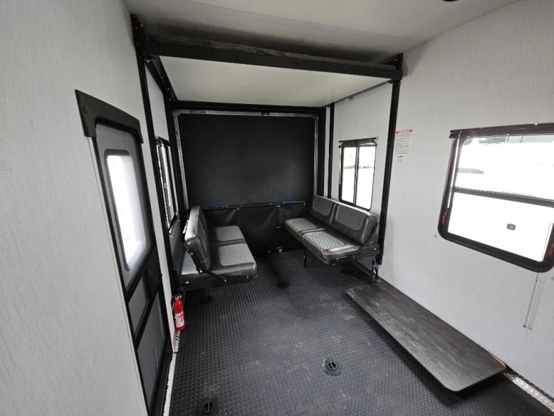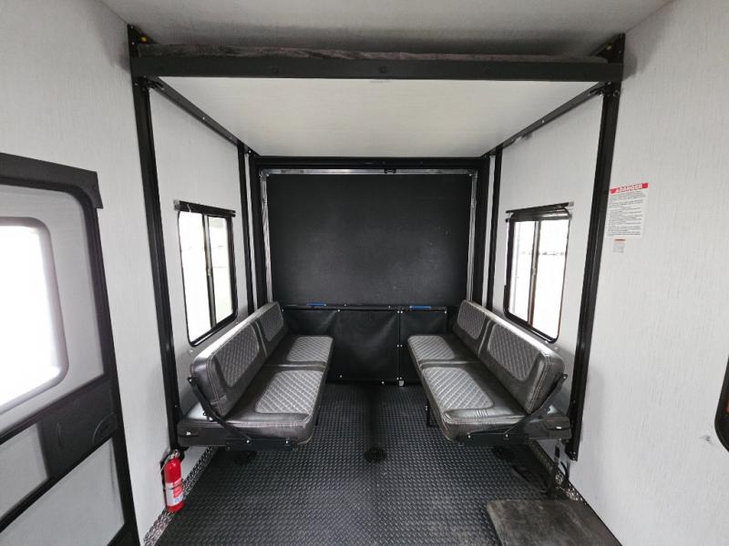 You will find indoor luxuries with an outdoor lifestyle in any one of these Heartland Gravity toy haulers! The 30 gallon lockable fueling station makes it easy to fuel up your favorite off-road toys and you can even unlock it with your units keys. The ramp door patio kit will create the perfect outdoor hangout spot, and the MORryde solid step helps you to safely enter and exit. You can go off grid thanks to the 20 watt solar panel with inverter prep and know that your toys will arrive in the same spot you left them with the integrated frame welded tie downs. The Dexter axles with G range tires ensures you will have a safe trip too. You can even keep your electronics fully charged with the wireless charging ports and keep yourself fully charged sleeping on the king bed!
