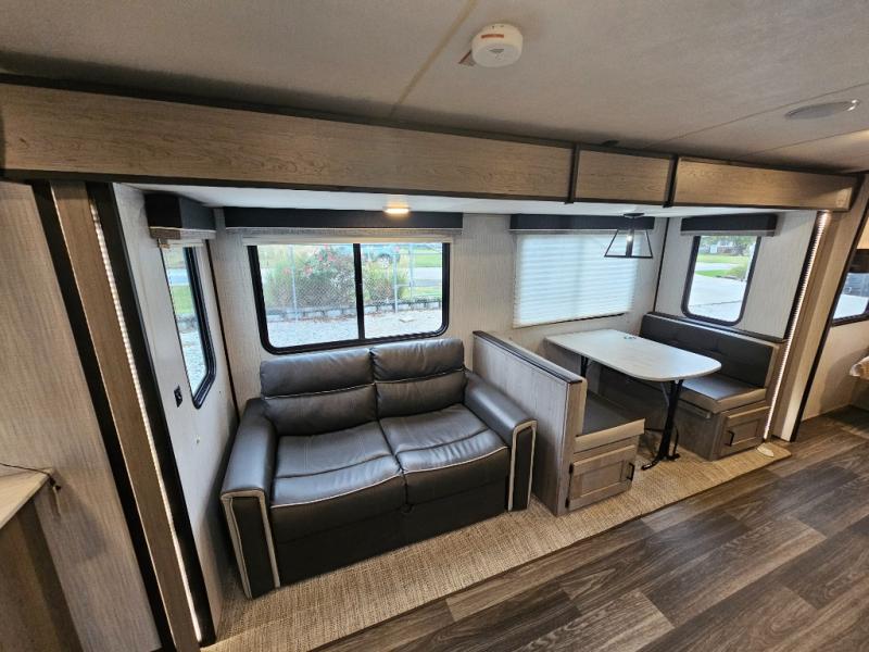 This includes a major systems inspection performed by our service techs after purchase. We will verify the roof air, refrigerator/freezer, slide-outs, generator (if equipped) water, and LP systems, all function as intended. In addition, the buyer always has the option and is encouraged to have a 3rd party inspection done at their expense. For a complete list of everything we go over in our service checkout please contact one of our salespeople.